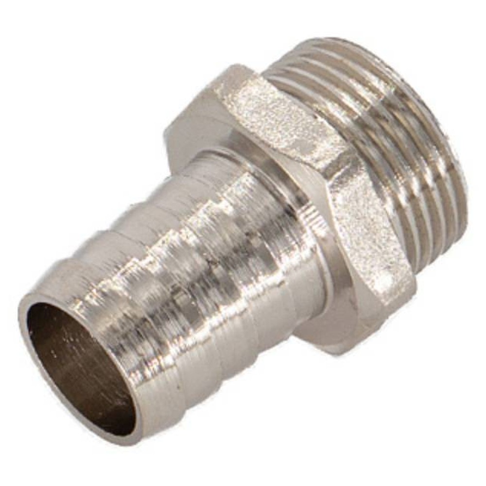 Присоединительный патрубок штуцера имеет наружную резьбу с насечками для лучшего удержания герметика. Сам штуцер для шланга имеет конфигурацию, эффективную для его фиксации.