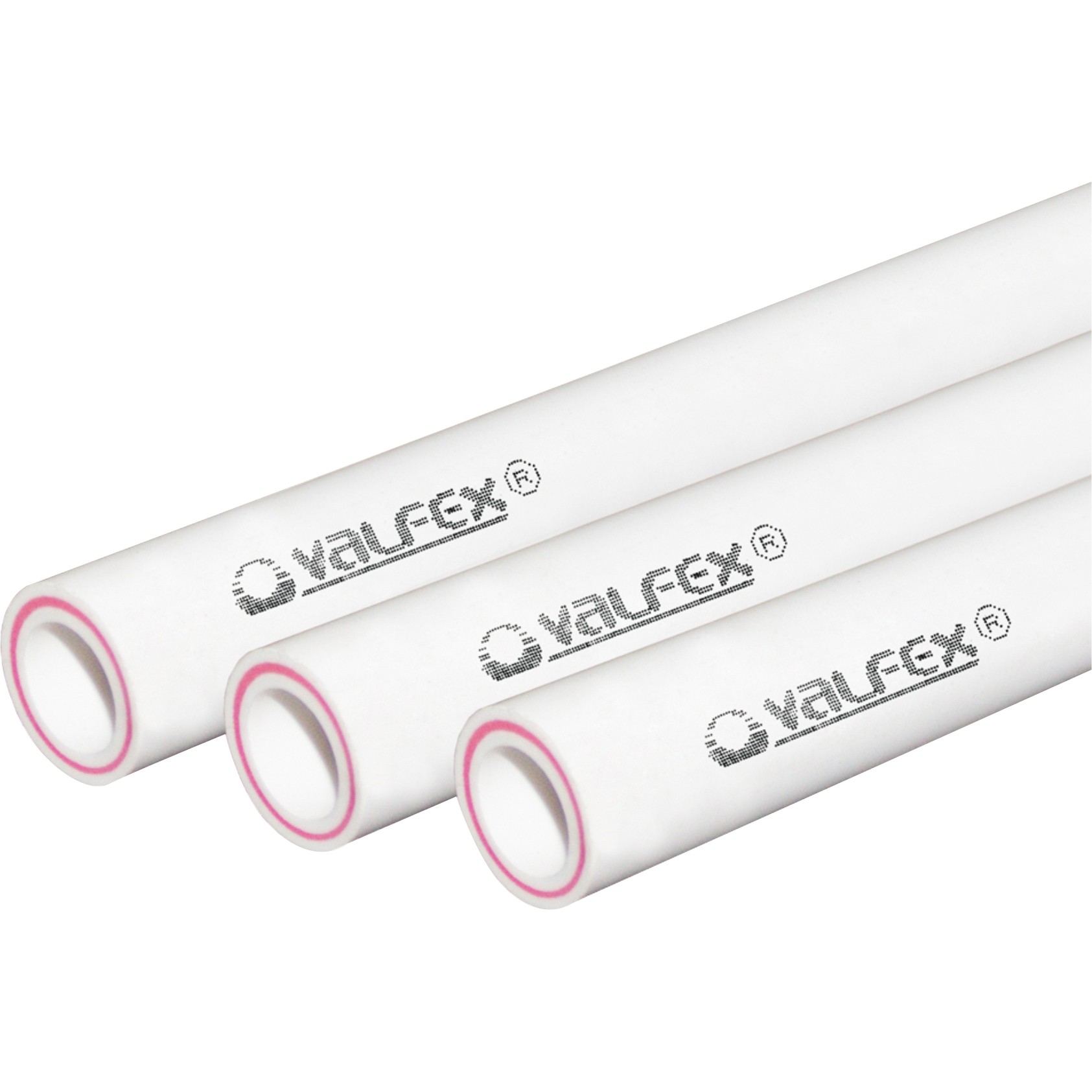 Трубы кольцевого сечения из статистического сополимера полипропилена PP-R трехслойные стеклонаполненные (средний слой армирован стекловолокном) (PP-R/PP-R GF/PP-R) ТМ VALFEX®.
