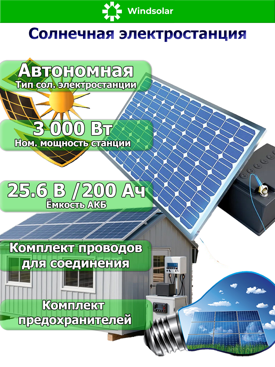 Комплект автономного энергоснабжения для бытовки, хозблока или вагончика (3 кВт) — энергия без проводов и забот!