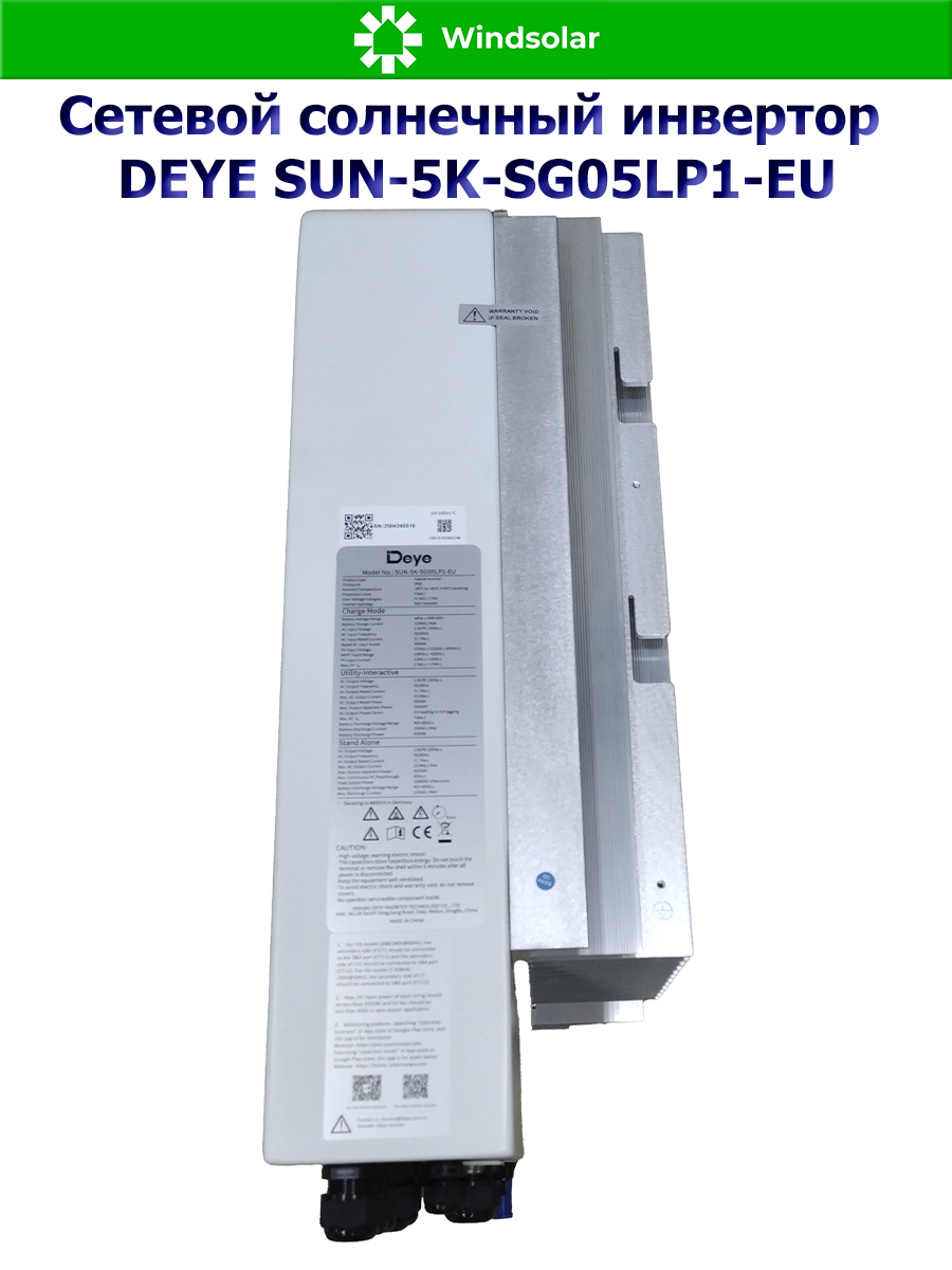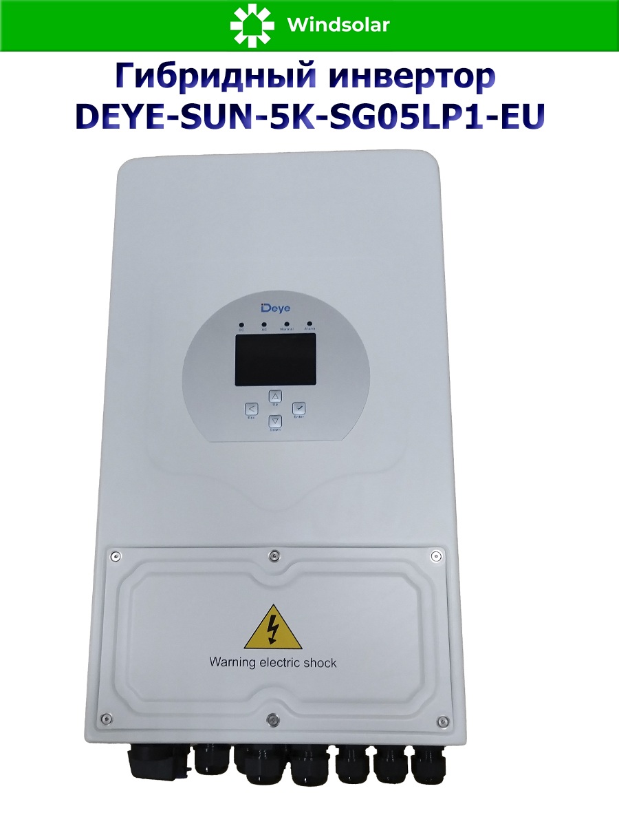 Гибридный однофазный инвертор DEYE-SUN-5K-SG05LP1-EU от компании Deye Inverter Technology Co, это не просто современный и высокоэффективный инвертор, а настоящая многофункциональная система, в которой сочетаются функции инвертора, контроллера заряда АКБ от солнечных панелей и зарядного устройства АКБ от сети 220В для обеспечения бесперебойной подачи питания, с возможностью выбора приоритетов зарядки и нагрузки. Используется не только совместно с городской сетью, но и автономном режиме (при временном отключении сети или в ее отсутствии, в принципе).