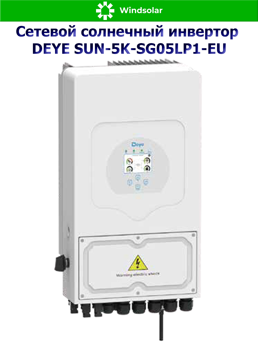 Гибридный однофазный инвертор DEYE-SUN-5K-SG05LP1-EU имеет высокий уровень качества и соответствует стандартам SGS, IEC, CQC, VDE, ЕАС; обладает компактный габаритами и эргономичным дизайном. Надежный, высокоэффективный и недорогой инвертор с возможностью ограничения отдачи в сеть и онлайн-мониторингом - идеальное решение для уменьшения счетов за электроэнергию.