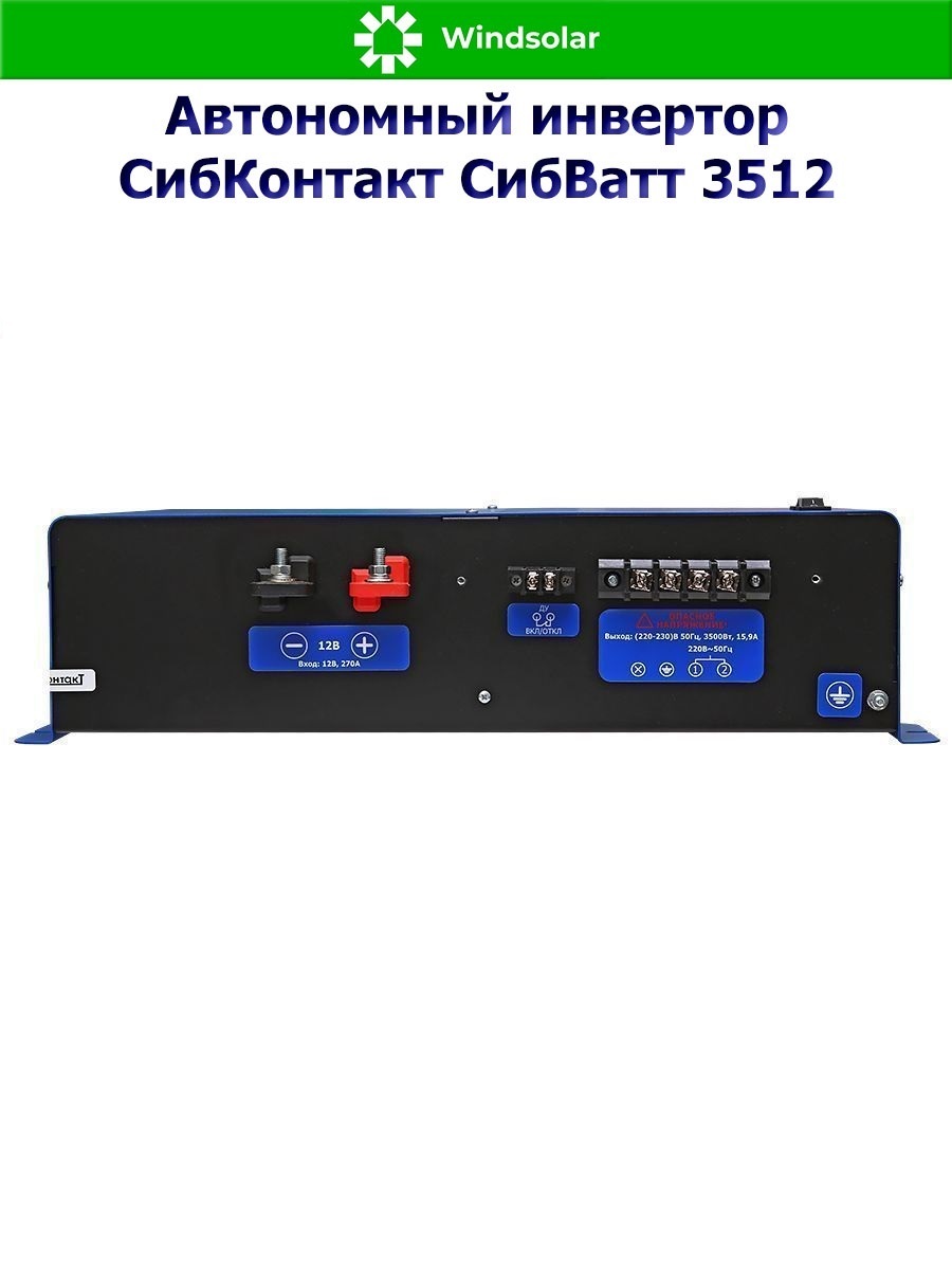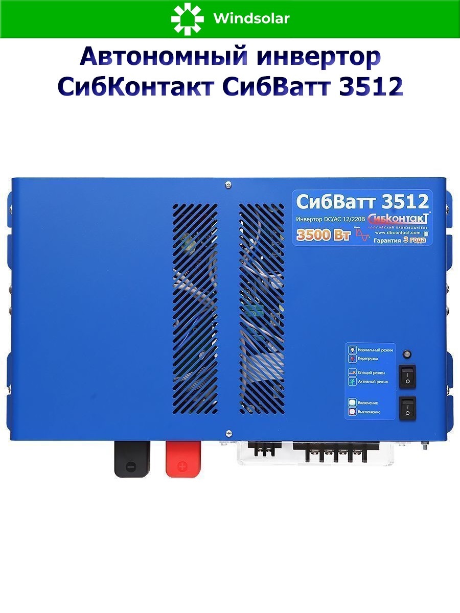 Инвертор СибВатт 3512 преобразует постоянное напряжение аккумулятора 12 В в переменное синусоидальное напряжение 220 В и частотой 50 Гц, аналогичное бытовой сети.