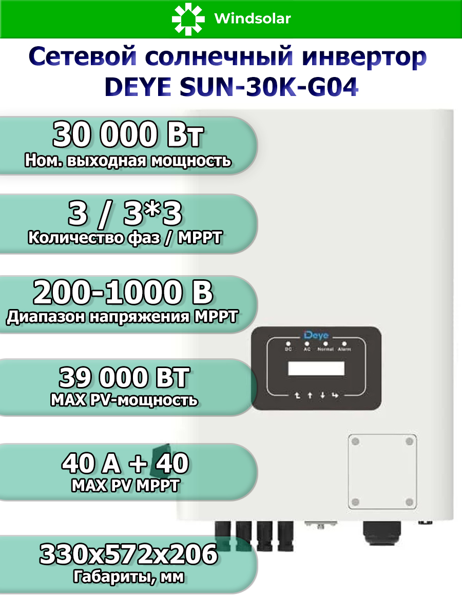Основные преимущества Deye SUN-30K-G04:
