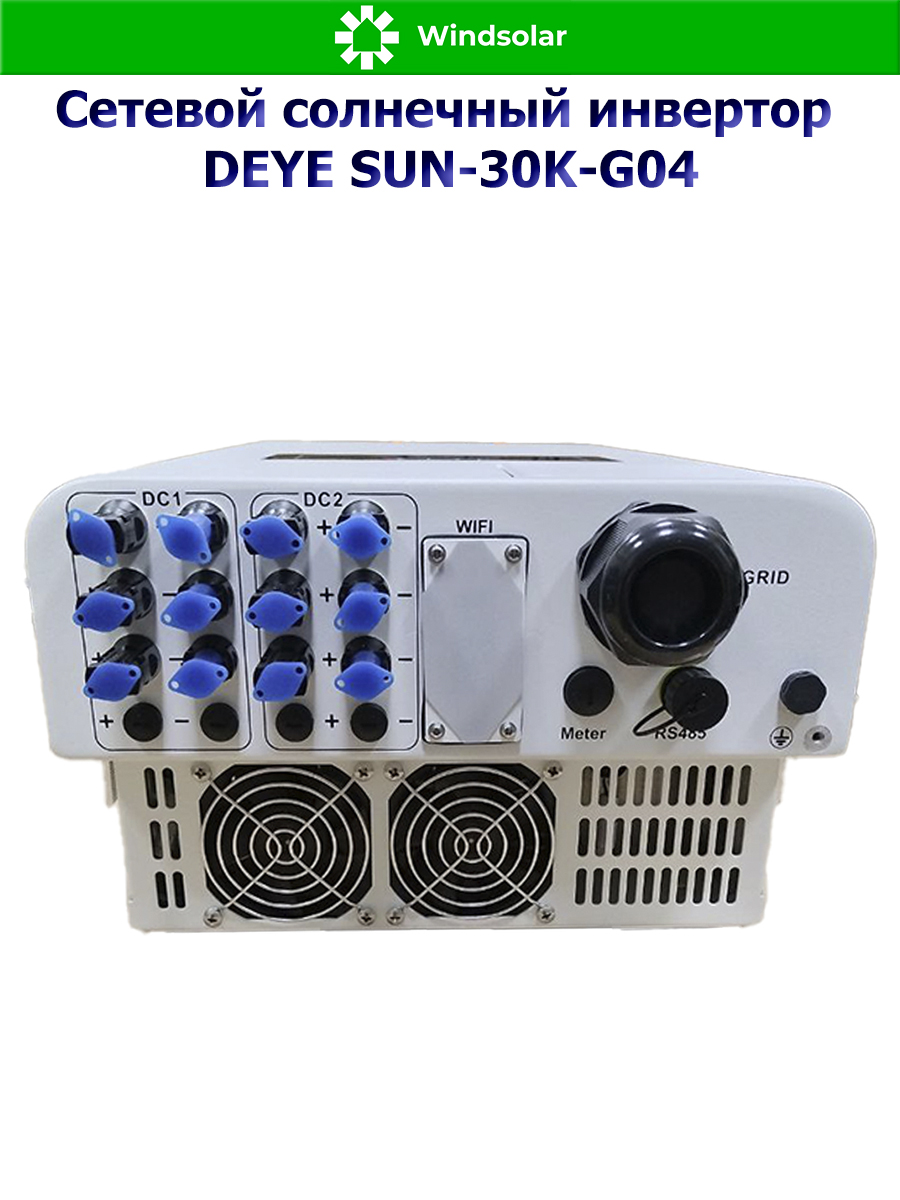 Сетевой трехфазный инвертор Deye SUN-30K-G04 от компании Deye Inverter Technology Co. - это передовое решение в области преобразования солнечной энергии, которое сочетает в себе высокую эффективность, надежность и удобство использования. Этот инвертор предназначен для работы только совместно с городской сетью и оснащен MPPT контроллерами заряда, что позволяет оптимально использовать энергию солнечных панелей.