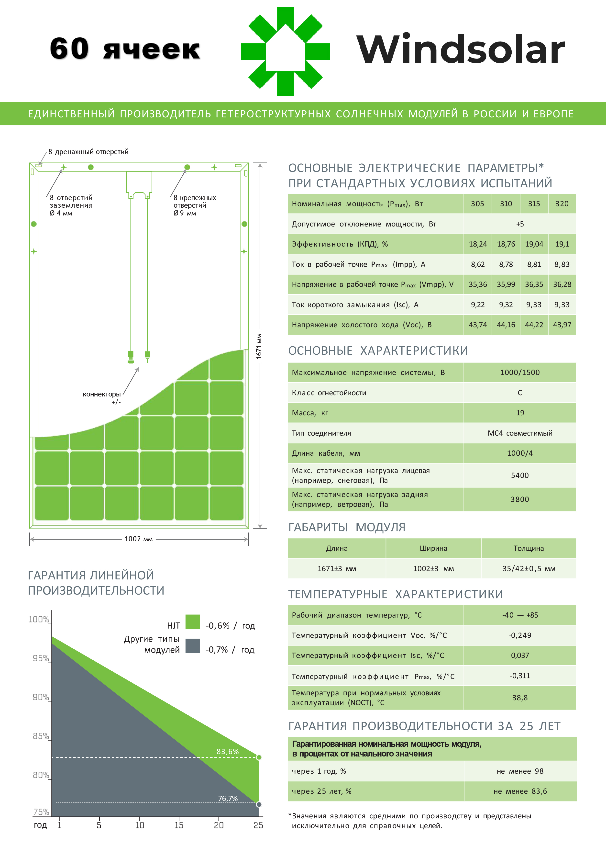 Обеспечьте свою энергетическую независимость — выберите надёжные гетероструктурные солнечные панели (модули) от Windsolar! С нашей солнечной панелью вы получите: