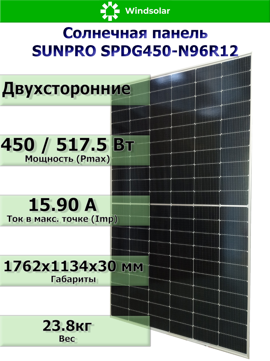 Закажите солнечную панель SPDG450‑N96R12 от Sunpro — и получите: