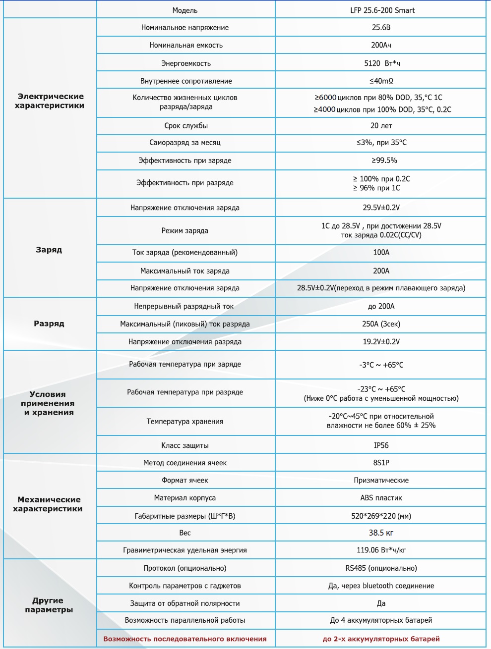 Основные преимущества VEKTOR ENERGY LFP 25,6-200 Smart: