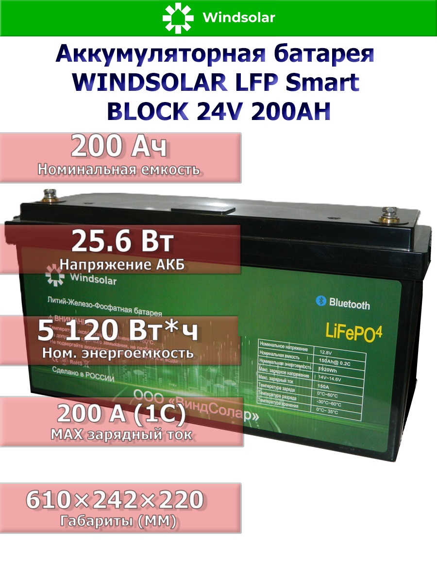 WINDSOLAR LFP Smart BLOCK 24V 200AH — это не просто АКБ, а высокотехнологичное решение, разработанное с учётом суровых российских условий эксплуатации.
