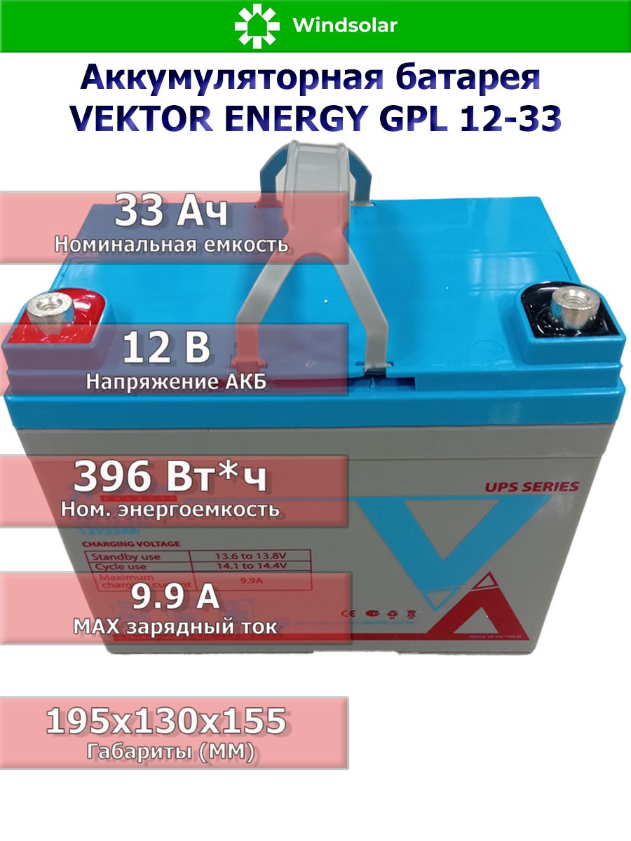 | Емкость (25°С) | C10 (10.8В) | 33 Ач |