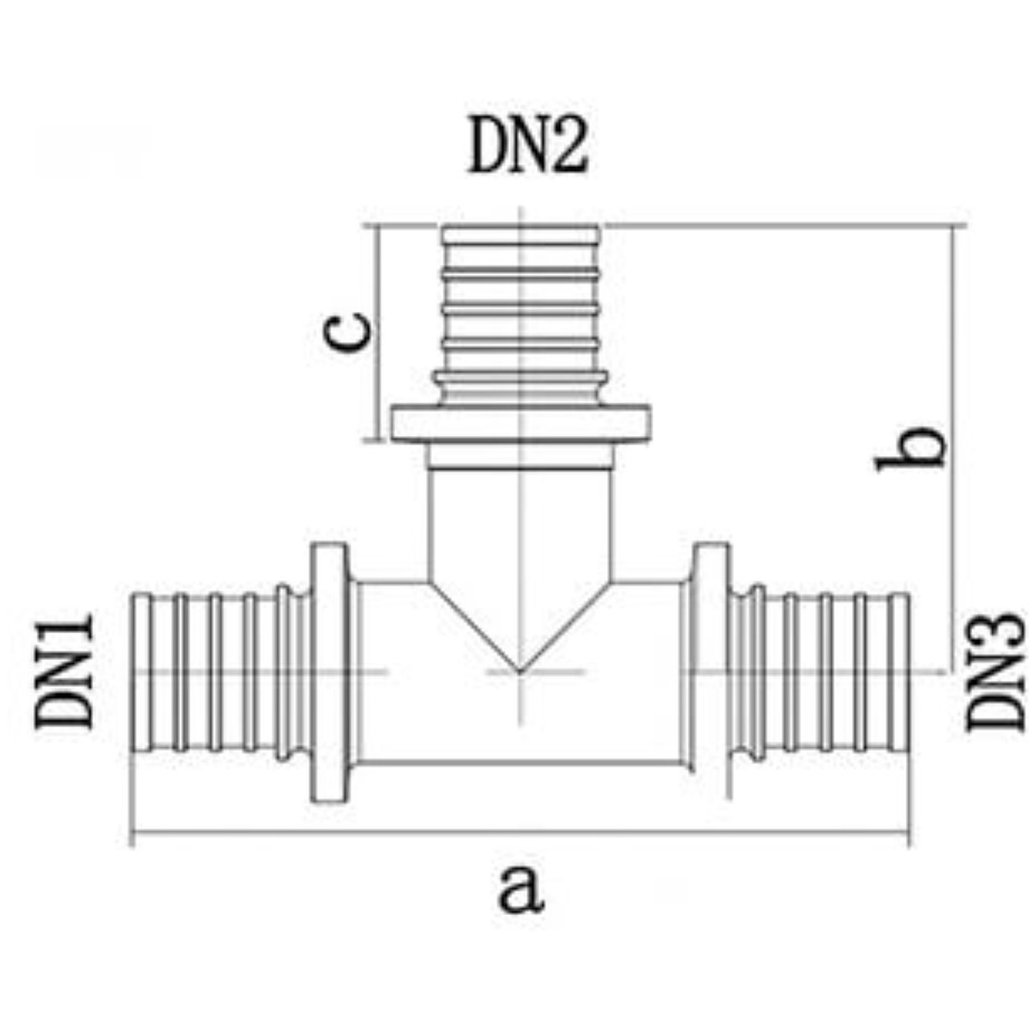 Конструкция фитинга позволяет осуществлять плавный переход между трубами разного диаметра, сохраняя герметичность системы. Центральный отвод имеет уменьшенный размер, что обеспечивает оптимальное распределение потока рабочей среды.