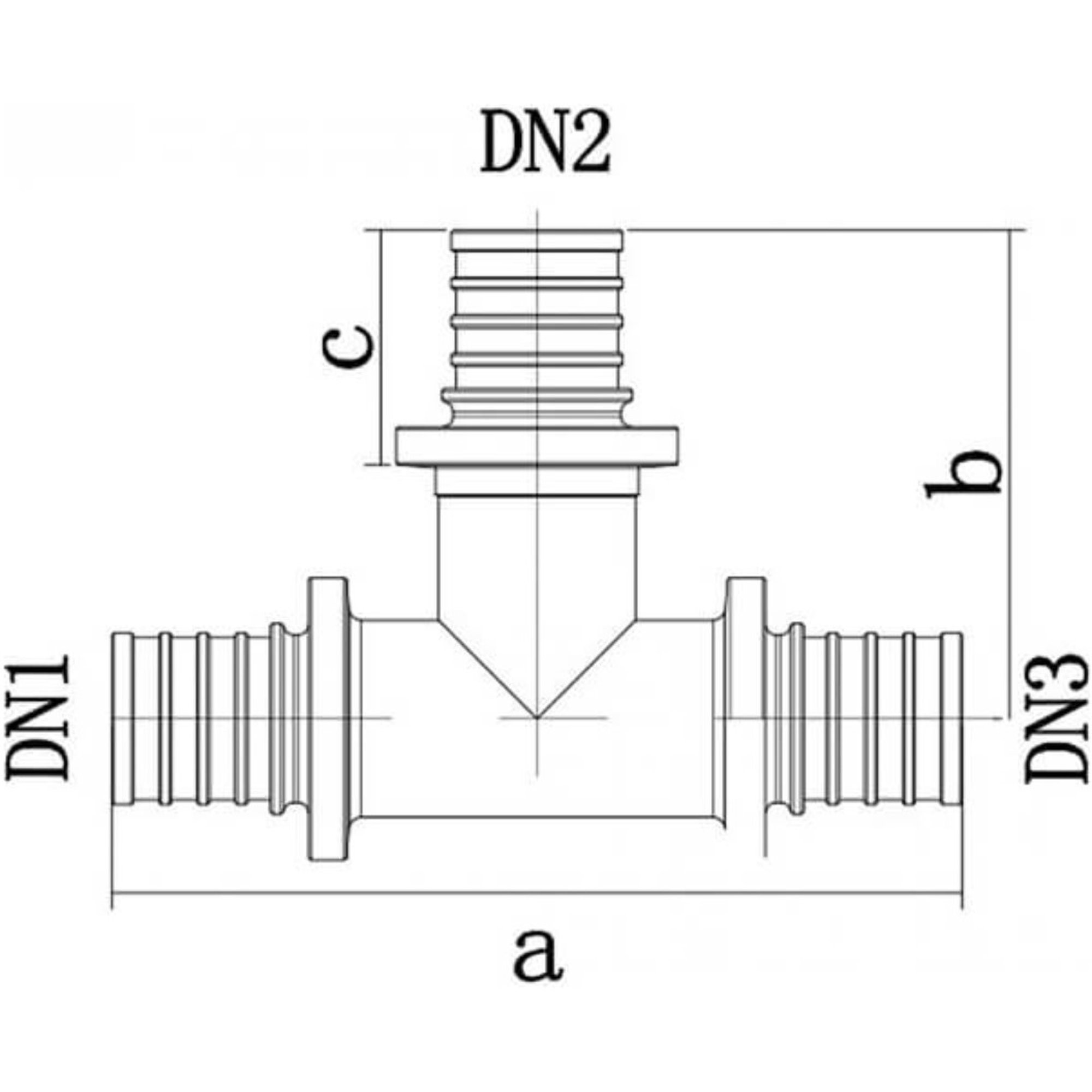 Конструкция фитинга позволяет осуществлять плавный переход между трубами разного диаметра, сохраняя герметичность системы. Центральный отвод имеет уменьшенный размер, что обеспечивает оптимальное распределение потока рабочей среды.