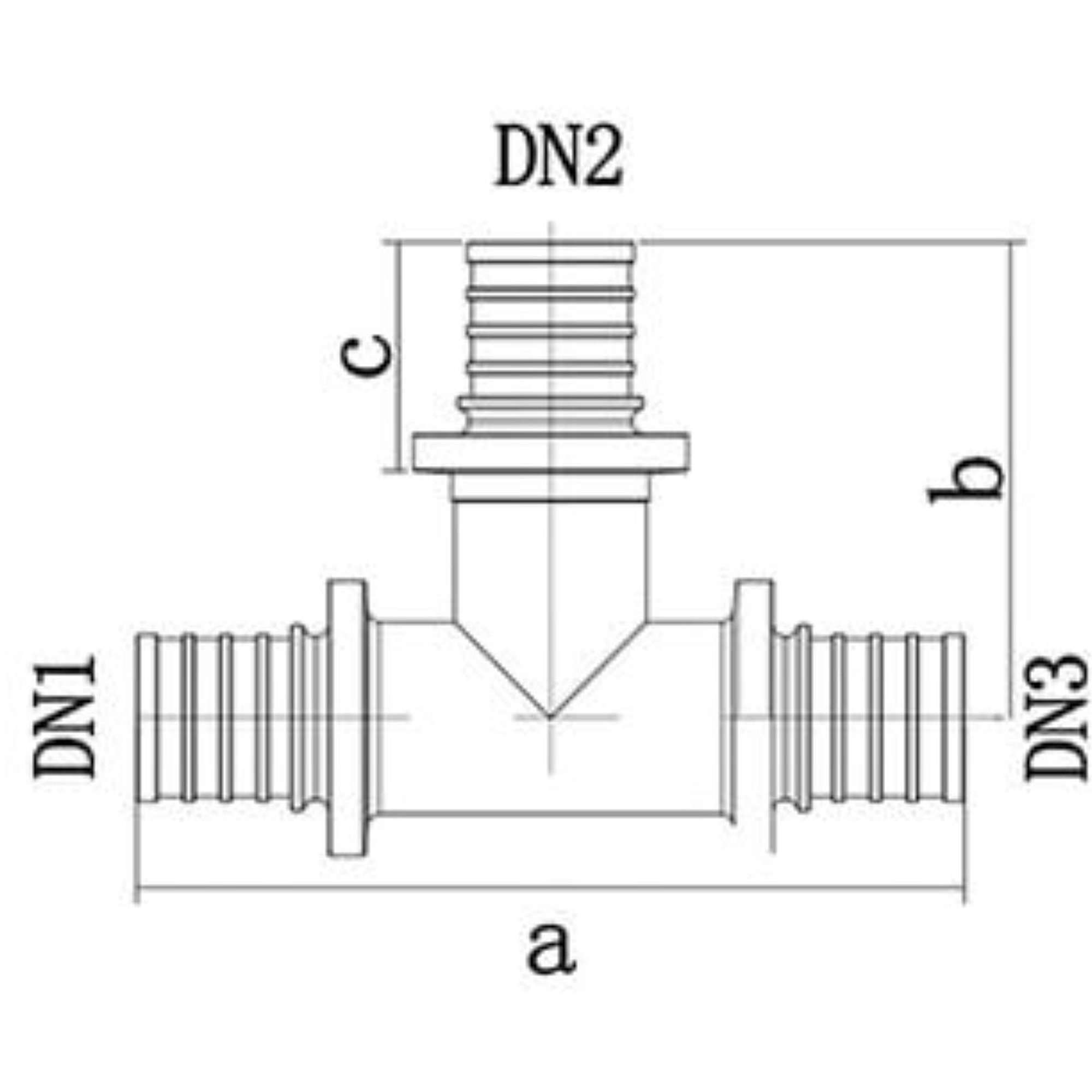 Конструкция фитинга позволяет осуществлять плавный переход между трубами разного диаметра, сохраняя герметичность системы. Центральный отвод имеет уменьшенный размер, что обеспечивает оптимальное распределение потока рабочей среды.
