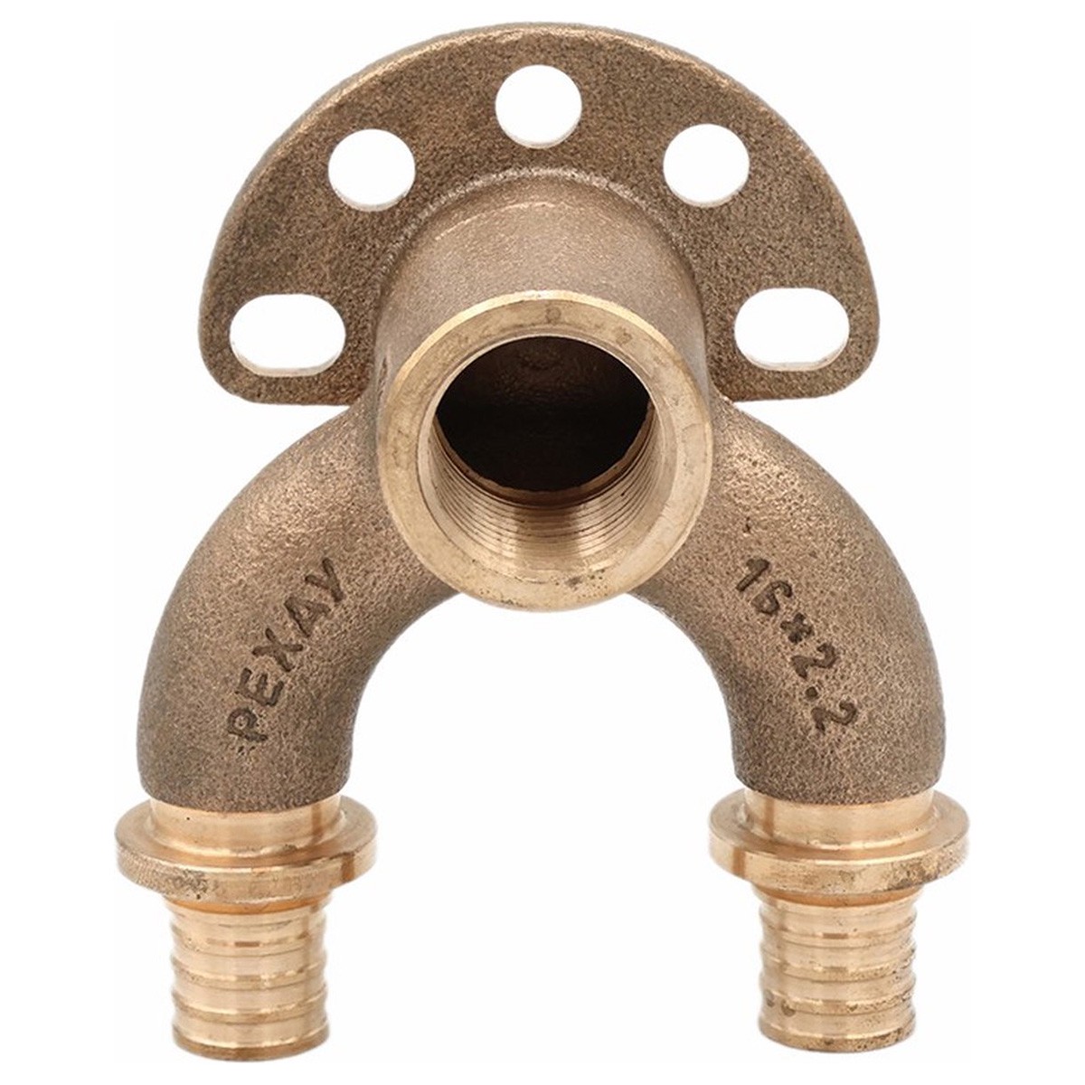 Фитинг позволяет сделать переход с аксиального соединения трубы из сшитого полиэтилена с диаметром 16 мм на резьбовое соединение 1/2" с помощью короткого нарезного патрубка. Имеет 2 точки крепления к стене.