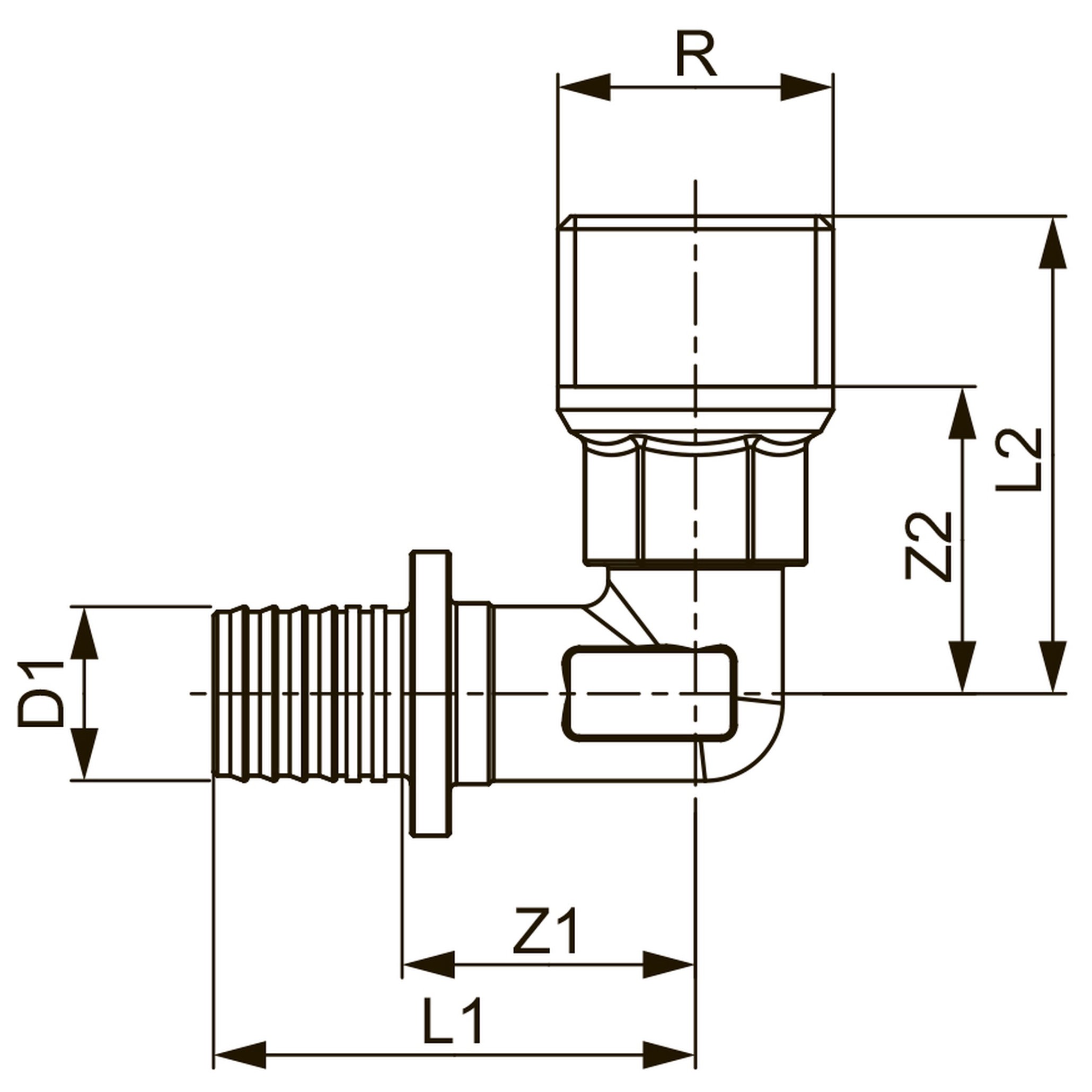 Штуцер и корпус угла разделяет монтажный упор. Он служит ограничителем посадки пластиковой трубы на штуцер и служит монтажным упором с использованием в монтаже прессового инструмента. Другой выход соединительного латунного угла с ниппелем Тесе имеет больший размер как внутреннего, так и внешнего диаметра. На этой части угла нарезана внешняя резьба. При помощи этой резьбы угол соединяет пластиковую часть трубопровода с другими элементами магистрали, имеющими соответствующую внутреннюю резьбу. Такими элементами могут быть металлические трубы, контрольно-измерительные приборы или другое оборудование. Соединительный латунный угол Tece с ниппелем применяют для монтажа отводов и поворотов в системах различного назначения. Соединительный угол из латуни с ниппелем Tece для труб из сшитого полиэтилена изготовлен из высококачественной латуни.