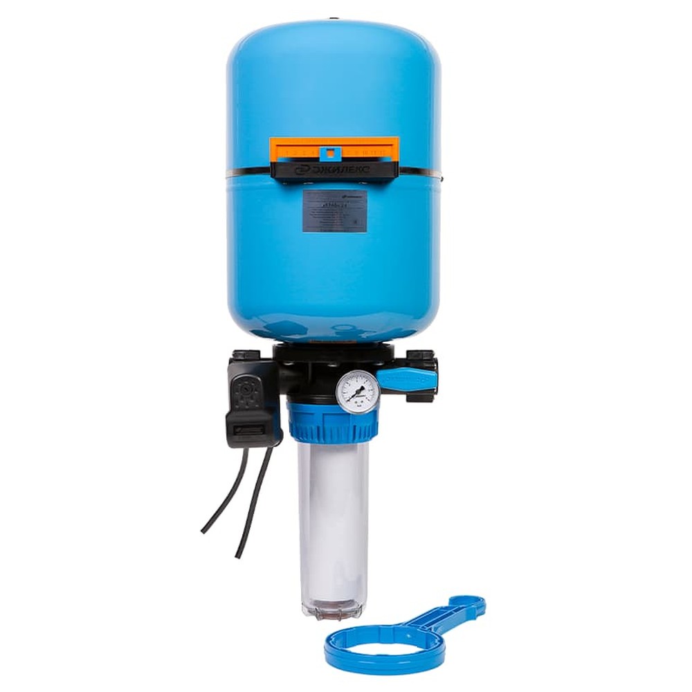 Предназначен для поддержания заданного давления в системах водоснабжения с предварительной фильтрацией воды. Легкий и удобный монтаж. Не требует дополнительной настройки. Автоматическое управление включением/выключением электронасоса. Полный комплект для автоматизации системы водоснабжения. Предварительная фильтрация воды. Календарь смены картриджей фильтра. Вся система устойчива к коррозии. Позволяют подключаться в любом удобном месте магистрали вне зависимости от направления потока воды. Объем бака 24 литра