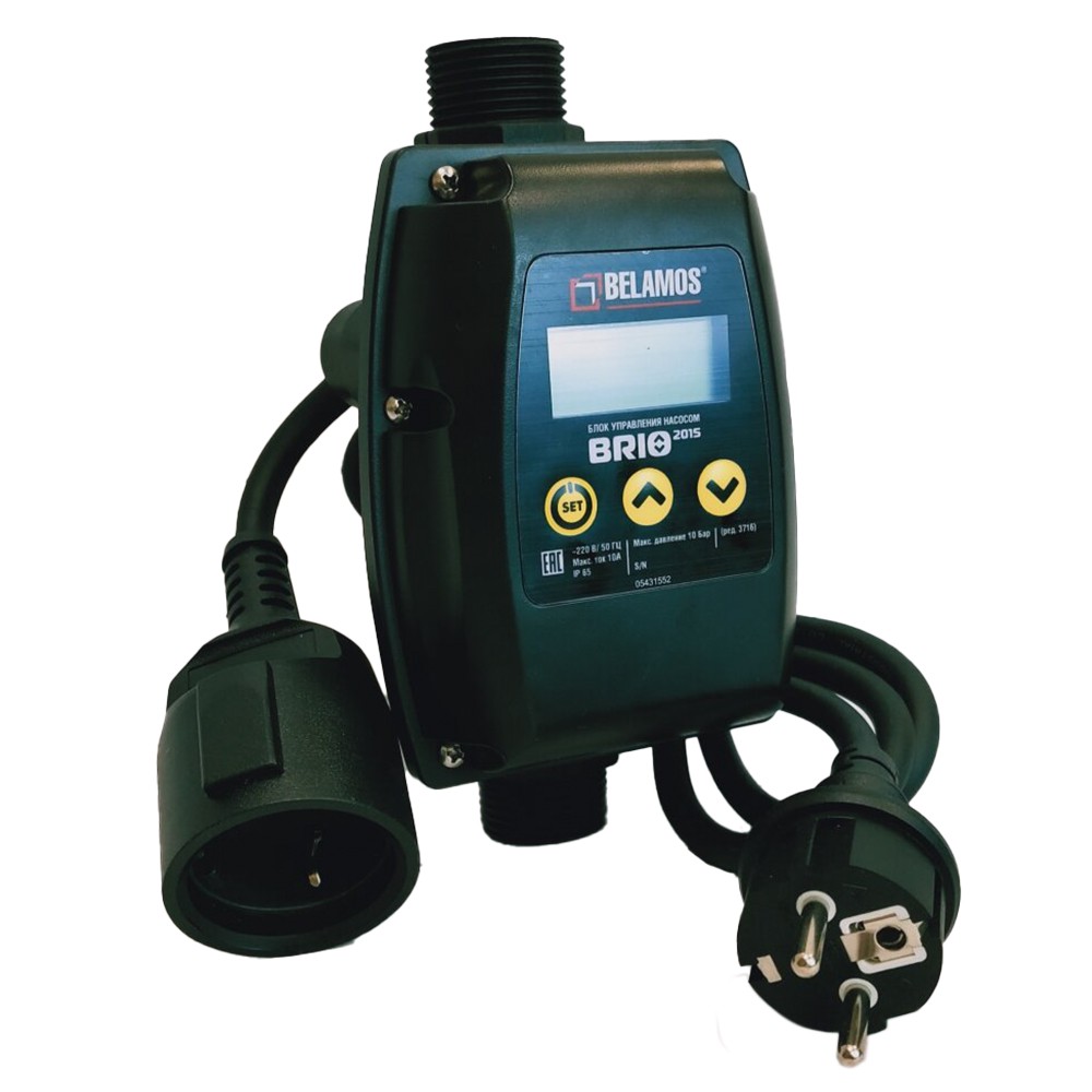 Реле давления Brio-2015 Беламос предназначен для автоматического управления работой однофазных поверхностных и погружных электронасосов. Если давление падает ниже установленного минимального значения, реле включает насос, а при достижении максимального значения отключает его. Также предотвращает работу насоса в режиме «сухого» хода. Устройство оснащено электронным дисплеем, сетевым кабелем длиной 1.3 м и кабелем с розеткой длиной 0.2 м.