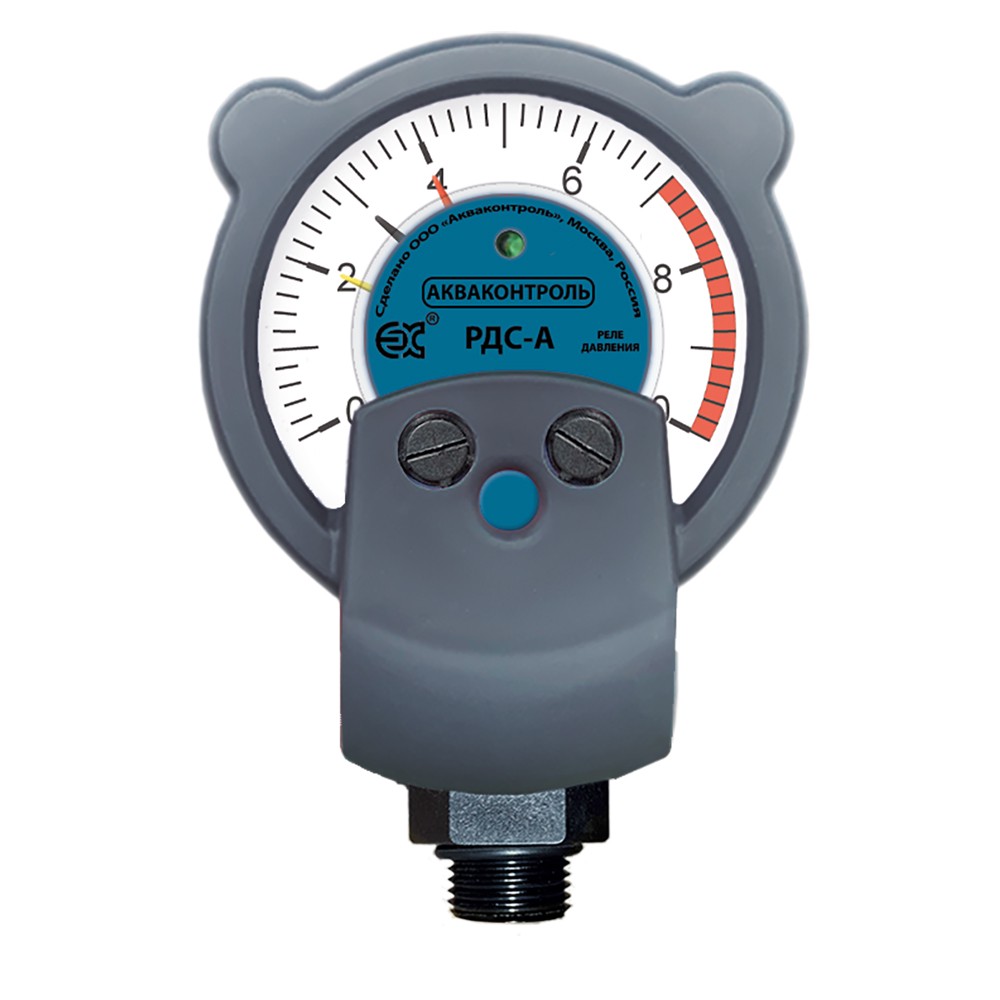 Реле Давления Стрелочное (РДС-А). Электронное устройство, для автоматизации включения/выключения скважинного/поверхностного насоса мощностью Р1, max - 1500 Вт, с защитой от "сухого хода" и автоматическим перезапуском. Удобное недорогое устройство заменяет электромеханическое реле давления с манометром. Предельные параметры пуска-остановки насоса быстро, но точно настраиваются при помощи регулировочных винтов и двух стрелочных указателей разных цветов.