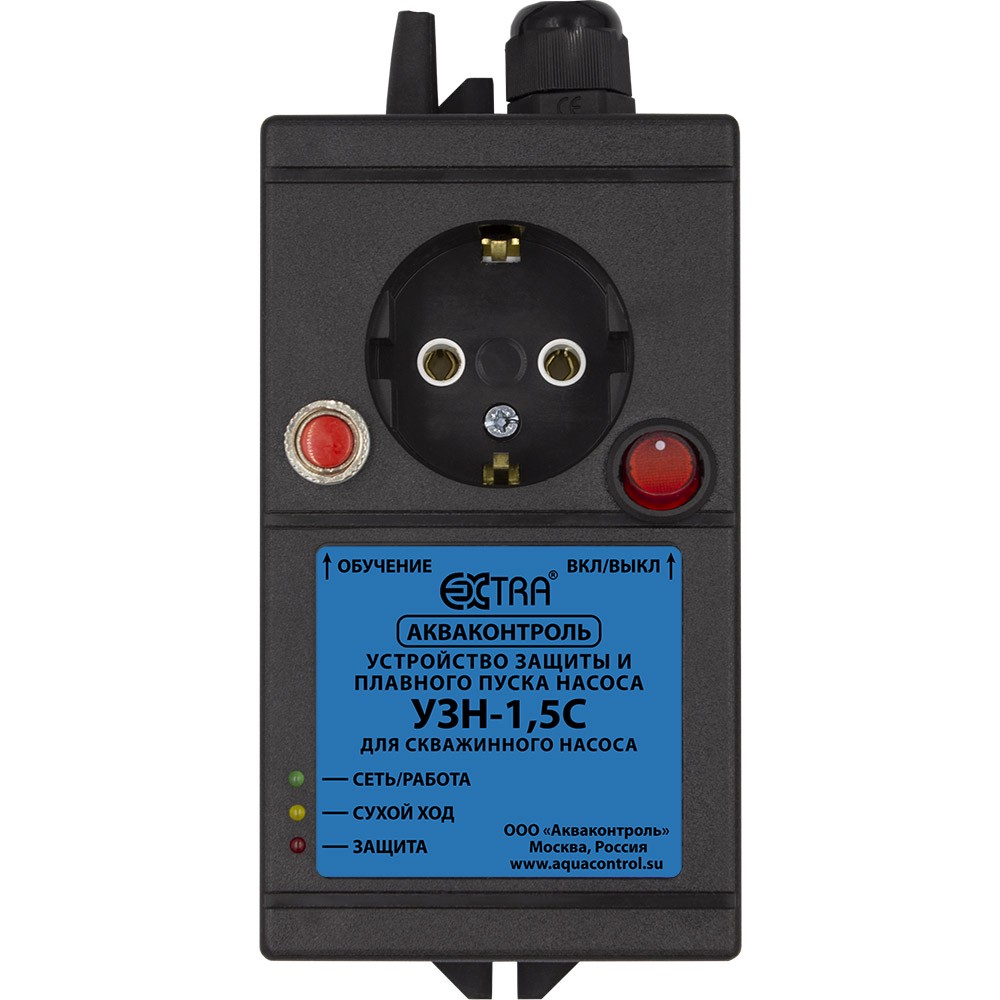 Устройство защиты насоса с плавным пуском и с функцией обучения для скважинного насоса максимальной мощностью Р1 от 300 до 1500 Вт. УЗН предохраняют оборудование от работы всухую, перегрузок по току, напряжению или при коротком замыкании, заклинивания вала электропривода. Функция обучения дает возможность подстроиться под насосное оборудование, если оно подходит по мощности. При установке УЗН обеспечивается плавный запуск и остановку техники.