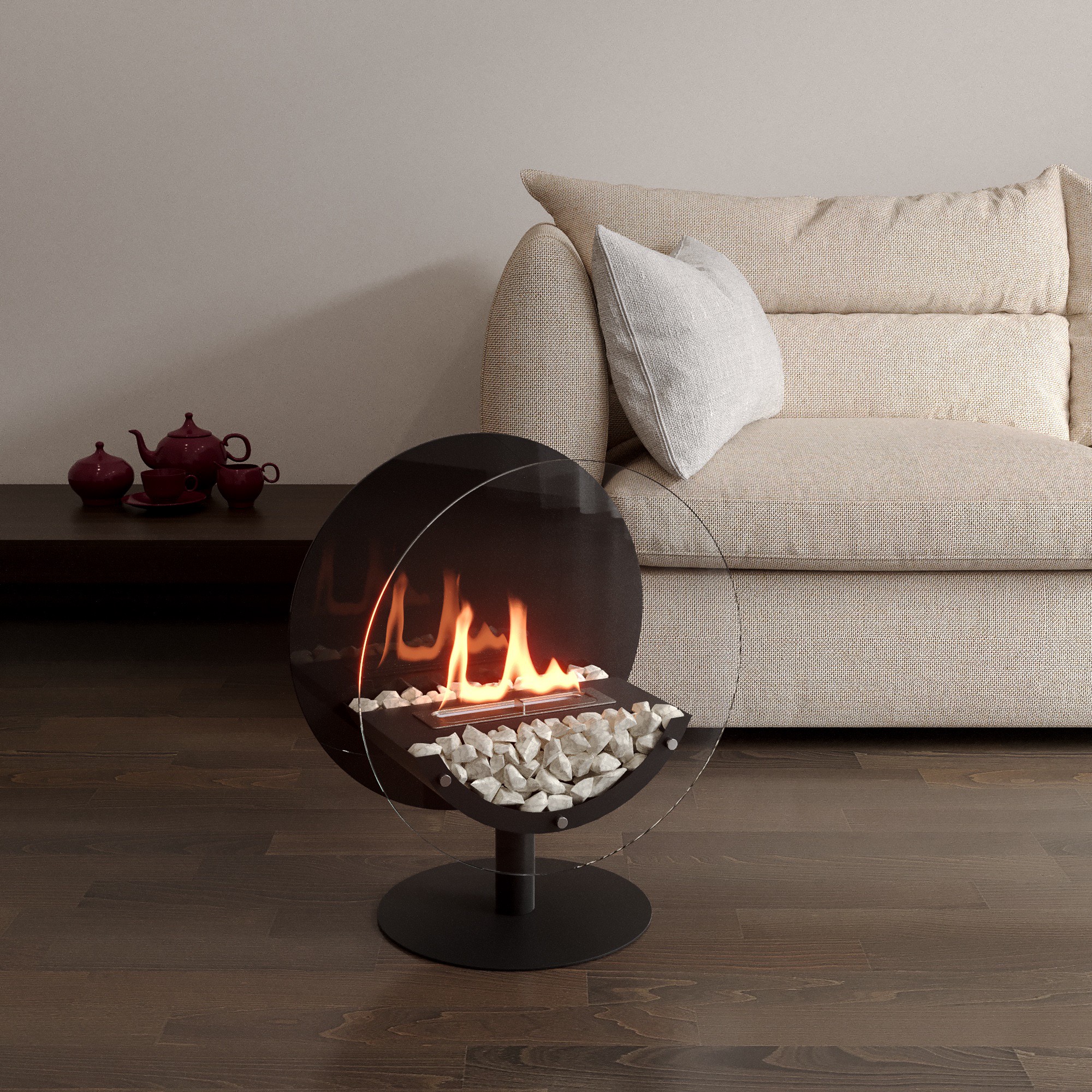 Биокамин представляет собой сборную напольную модель оригинального дизайна из закаленного прозрачного стекла с одной стороны, стекла с стемалитом с другой стороны и топливного блока на ножке.