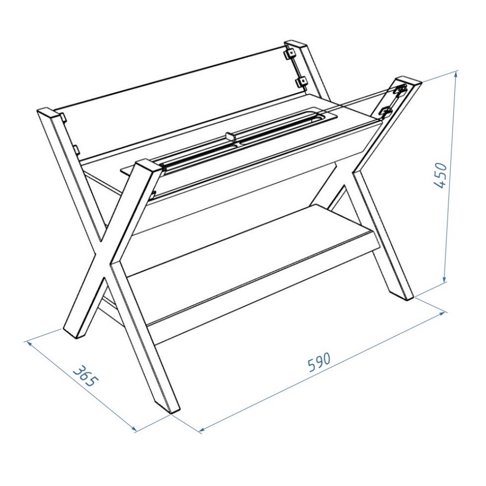 Биокамин представляет собой сборную напольную модель оригинального дизайна из закаленного прозрачного стекла и топливного блока на подиуме. С деревянными натуральными накладками и набором дров с дровницей, обработанных огнебиозащитным средством.