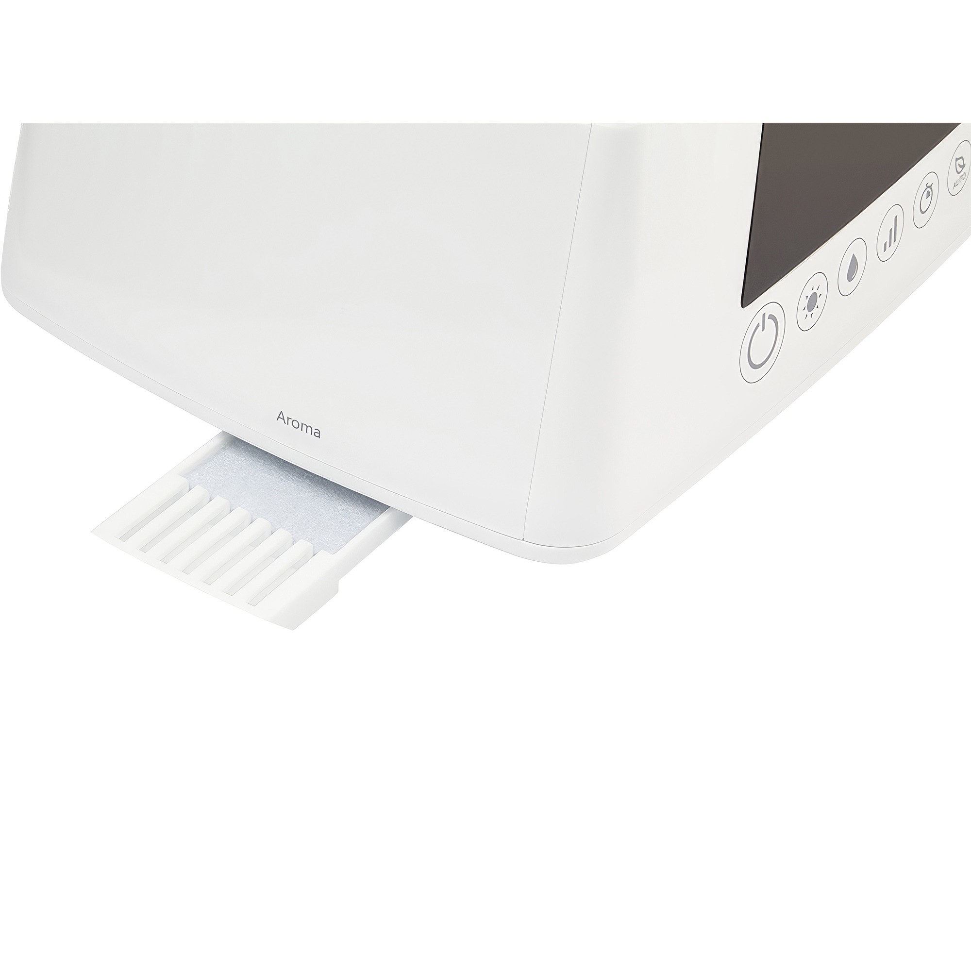 - Большой бак для воды вмещает в себя 7,5 литров, что обеспечивает непрерывное увлажнение в течение 21 часа