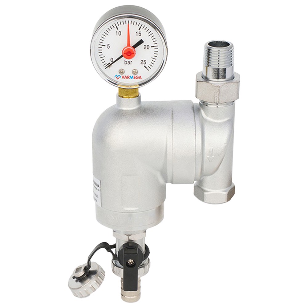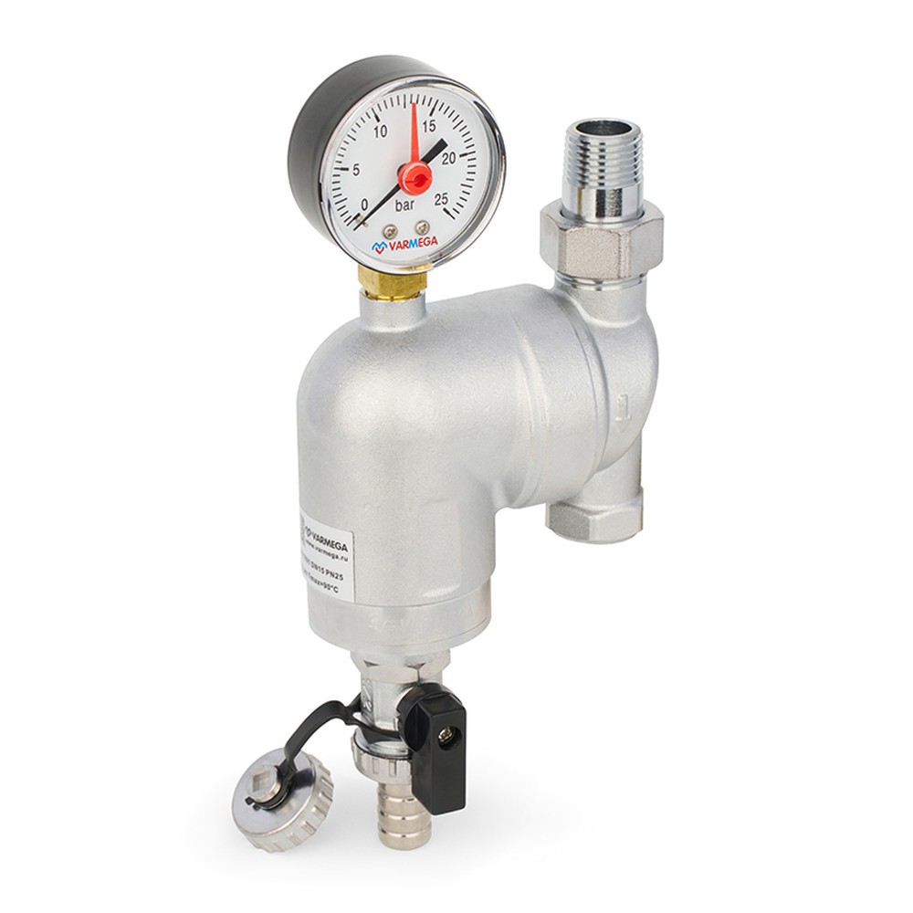 Манометр и шаровый кран со сливным штуцером входят в комплектацию фильтра.