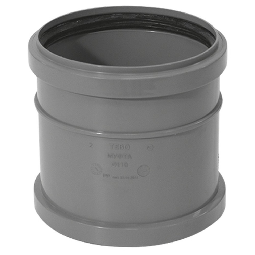 Муфта внутренней канализации TEBO ПП 110, двухраструбная (013020204) – соединительный элемент для труб диаметром 110 мм. Обеспечивает надежное соединение без клея, подходит для хозяйственно-бытовой канализации