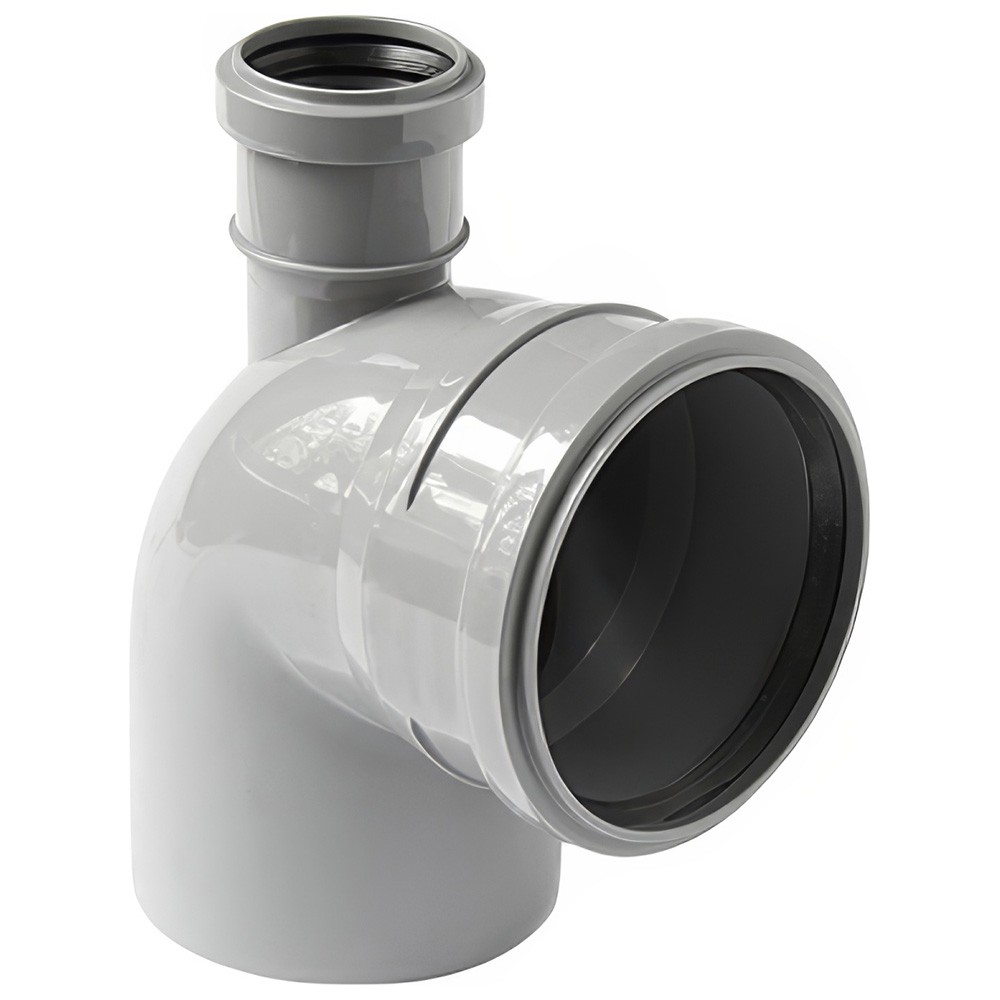 Отвод универсальный номинального диаметра 110 мм, имеет выход диаметром 50 мм применяется для соединения труб и фасонных деталей внутренней канализации, используется для монтажа канализационных систем, транспортирующих стоки внутри жилых, административных, производственных зданий.