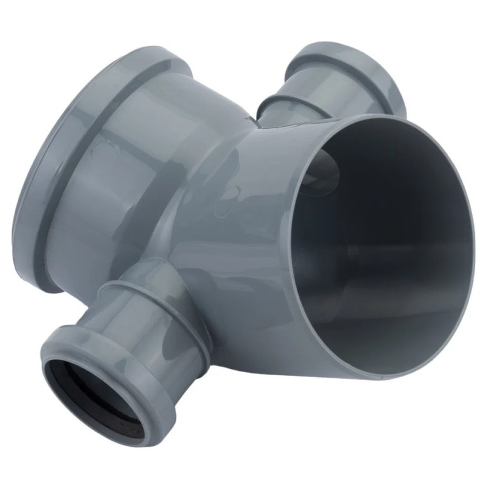 Отвод Политэк Пайп 110х45гр. с выходом 50 левый+правый ВК – обеспечивает подключение двух дополнительных отводов 50 мм, расположенных с левой и правой стороны. Позволяет организовать сложные разветвления трубопровода, обладает высокой герметичностью