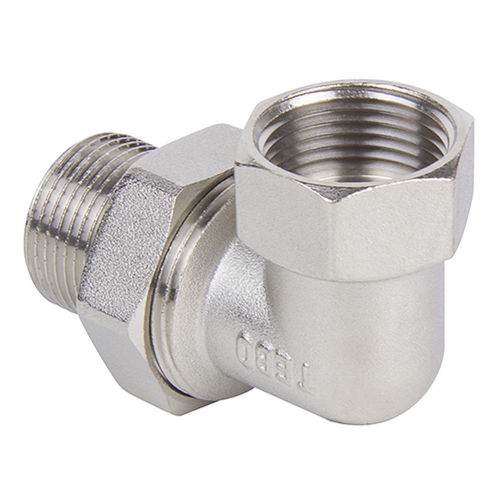 Американка угловая TEBO ВР/НАР 3/4" (T-ЛР.Ау.2.34.CN) – аналогичный фитинг с диаметром 3/4", выполненный из никелированной латуни. Оснащен накидной гайкой, что упрощает монтаж и демонтаж