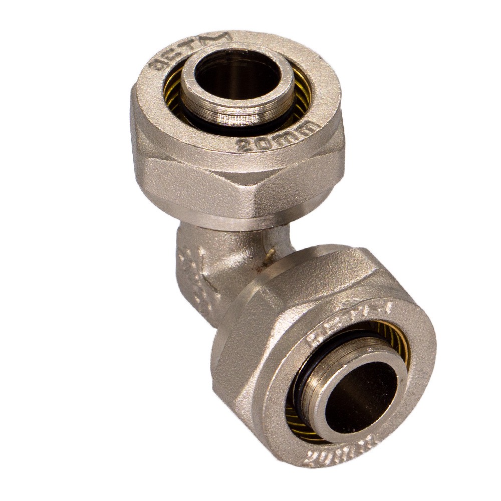 Уголок 16х16 CTM - обжимной фитинг для соединения металлопластиковых (металлополимерных) труб. Изготовлен методом горячей штамповки из латуни с последующей термической обработкой и никелированием для предотвращения появления коррозии, механического износа и вредного воздействия агрессивных жидкостей и воздушно-газовых сред. Корпус, накидные гайки и обжимные кольца уголка изготовлены из латуни , уплотнительное кольцо из нетоксичной резины (EPDM), диэлектрическая прокладка из фторопласта Ф4. Накидные гайки усиленные.