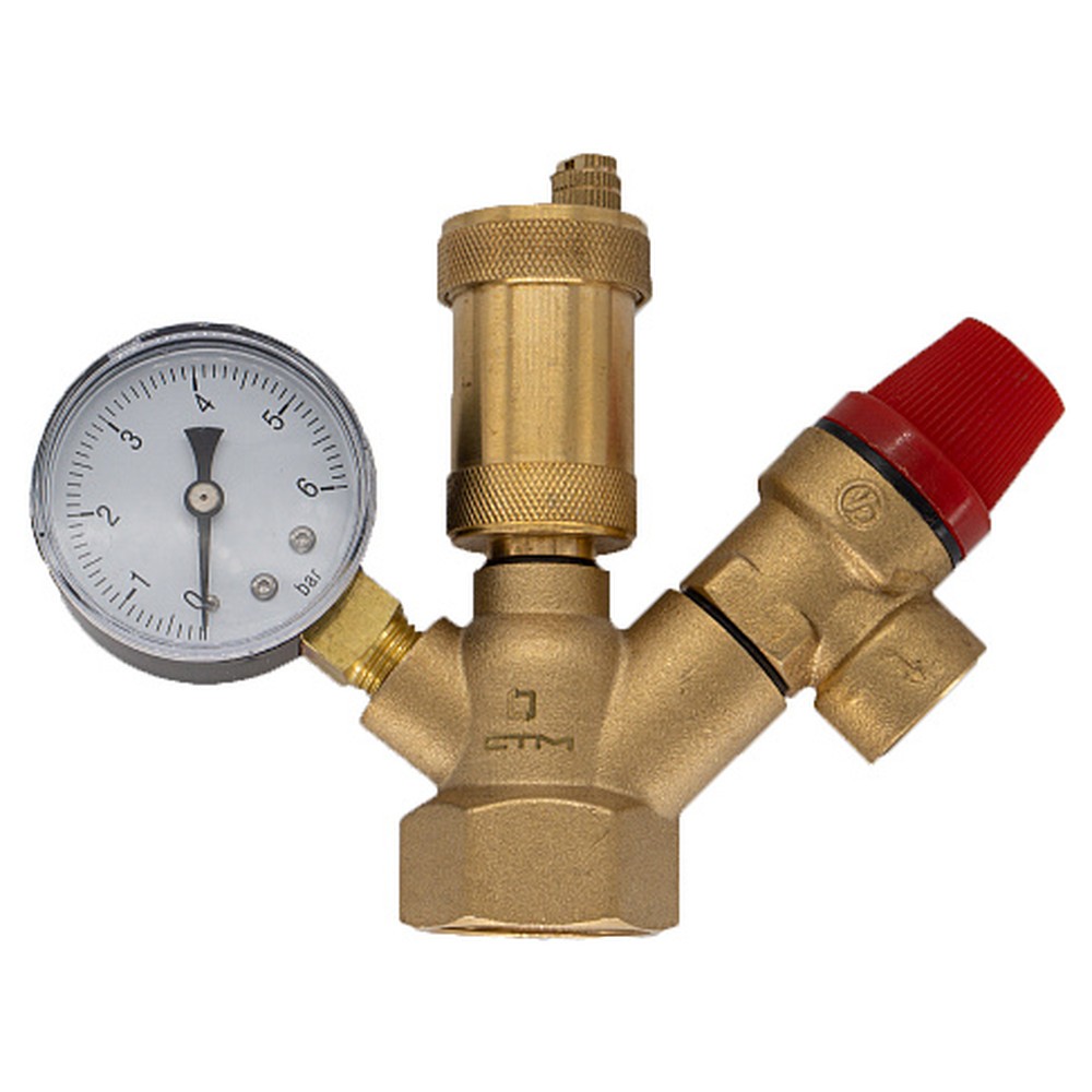 Группа безопасности котла компакт СТМ ТЕРМО 1" CARSGC01 используется для контроля и предотвращения аварий, связанных с закипанием теплоносителя в котле.