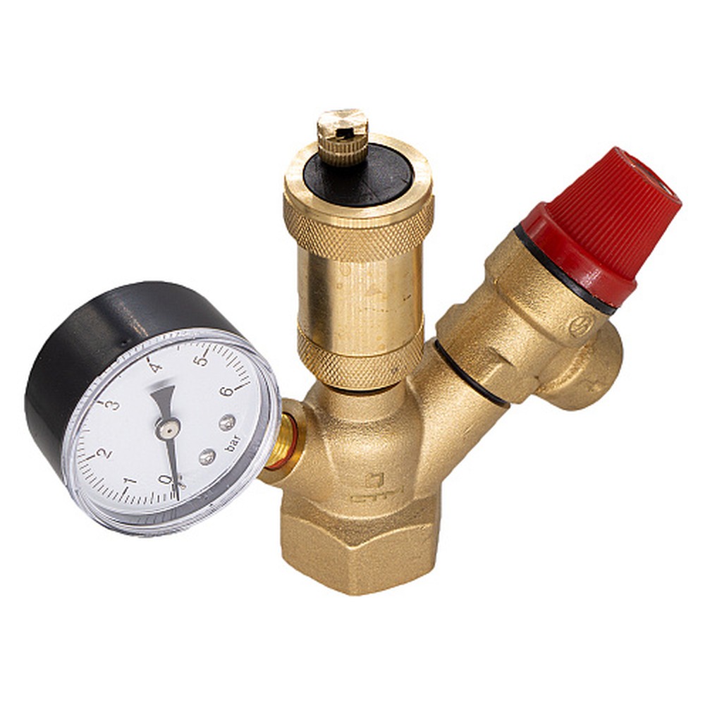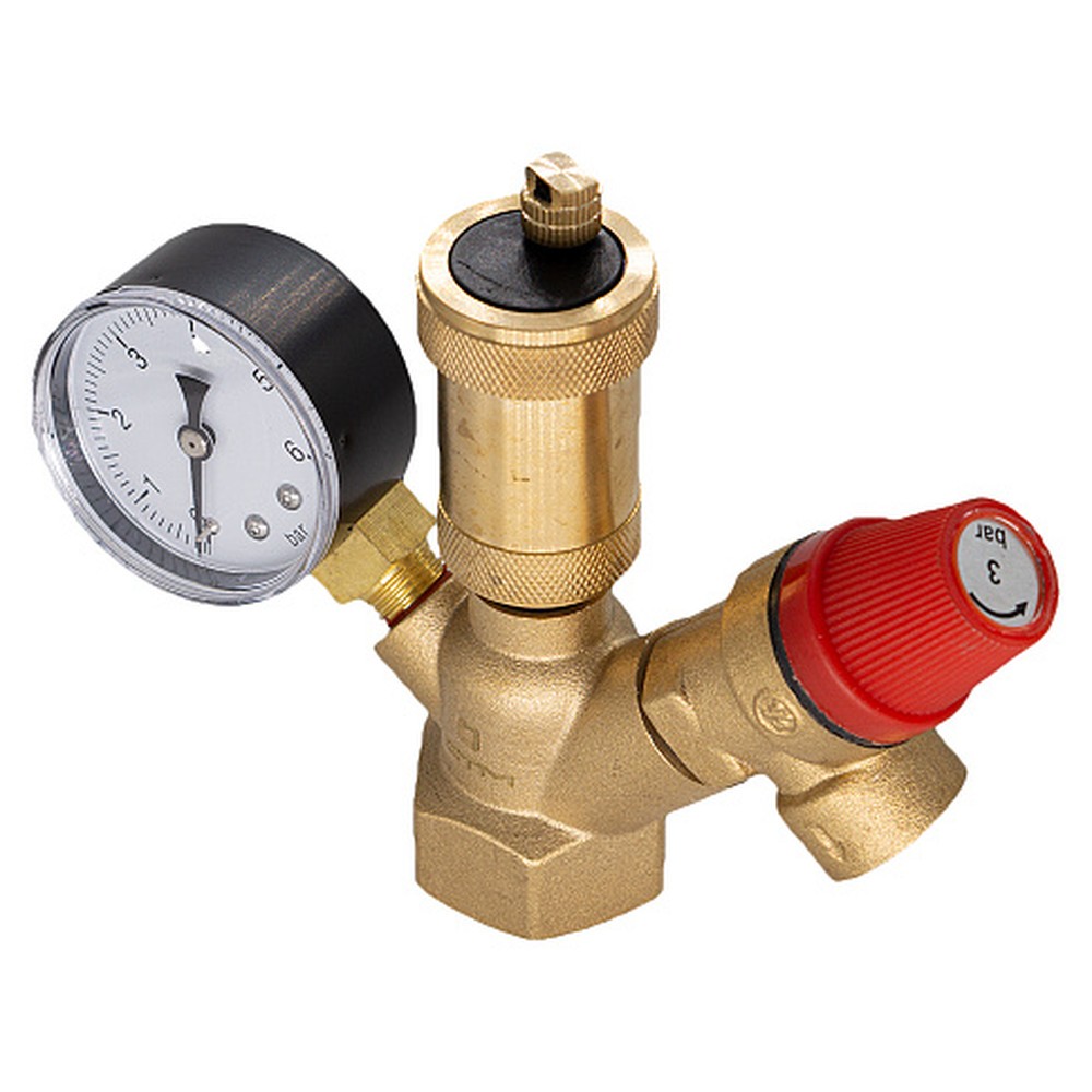 Представляет собой компактный, смонтированный на корпусе предохранительный клапан, радиальный манометр и автоматический воздухоотводчик.