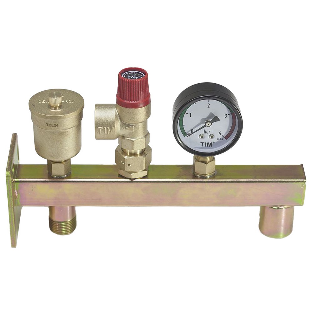Предохранительный клапан, автоматический воздухоотводчик, радиальный манометр, фланец для настенного крепления, крепление для расширительного бака