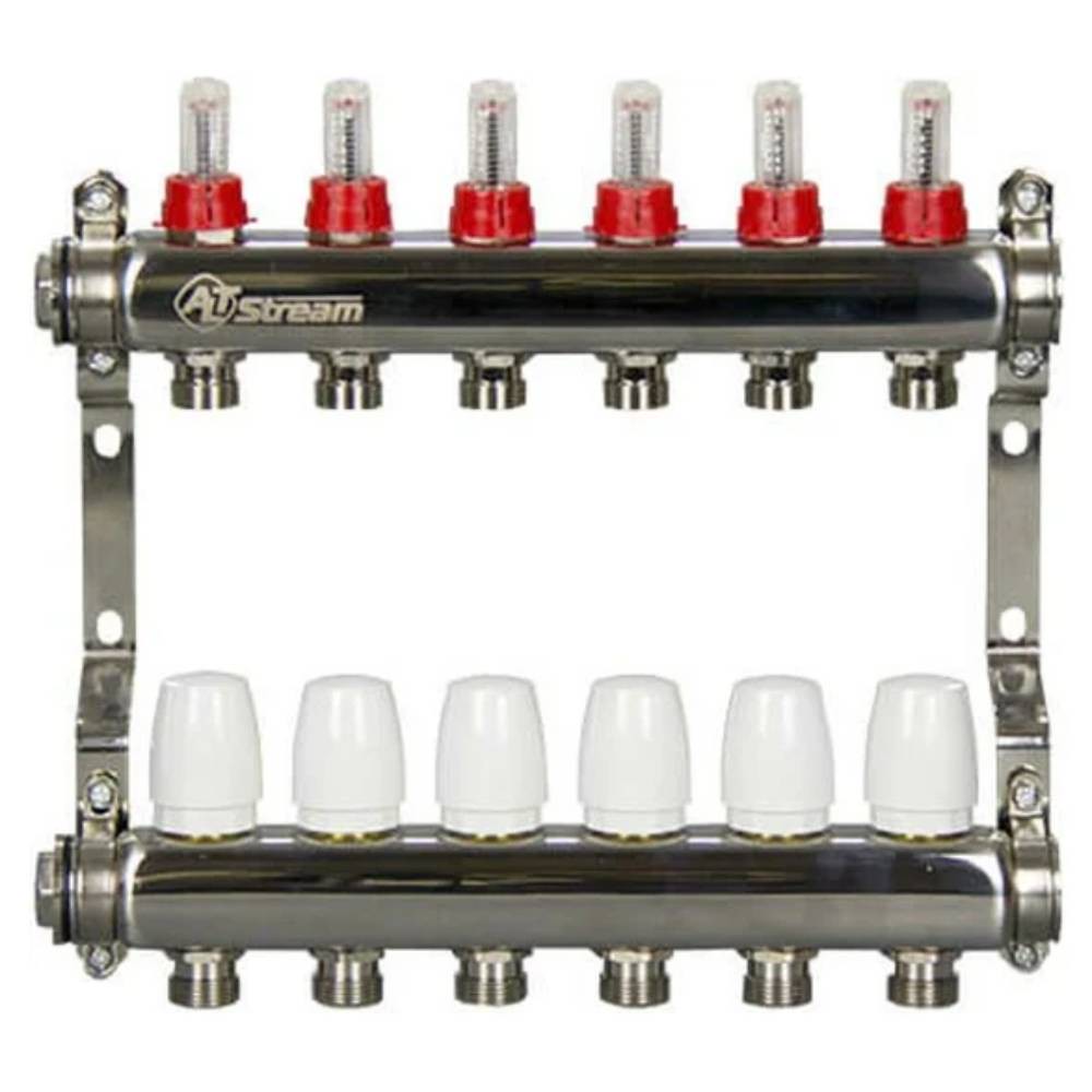 Стальная коллекторная группа ALTSTREAM с расходомерами представляет собой надежное и долговечное решение для организации систем отопления и водоснабжения. Сталь, как материал, обладает высокой прочностью и устойчивостью к коррозии, что гарантирует продолжительный срок службы изделия. Коллекторная группа ALTSTREAM обеспечивает оптимальное распределение теплоносителя или воды по контурам, а расходомеры позволяют точно контролировать расход в каждом контуре.