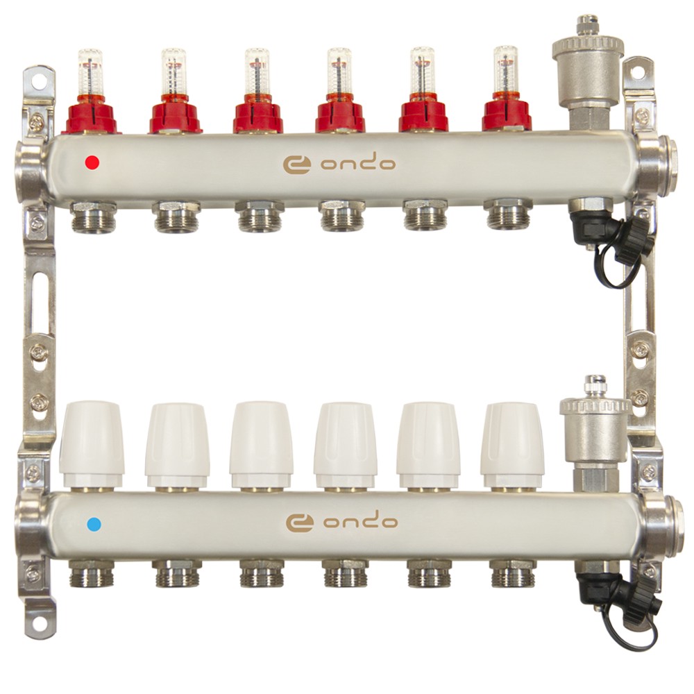 Коллекторная группа ONDO из нержавеющей стали предназначена для оптимизации, контроля и распределения теплоносителя в системах радиаторного и напольного отопления.