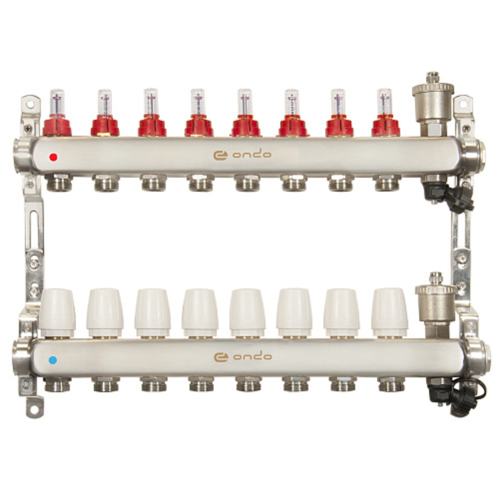 Коллекторная группа ONDO из нержавеющей стали предназначена для оптимизации, контроля и распределения теплоносителя в системах радиаторного и напольного отопления.