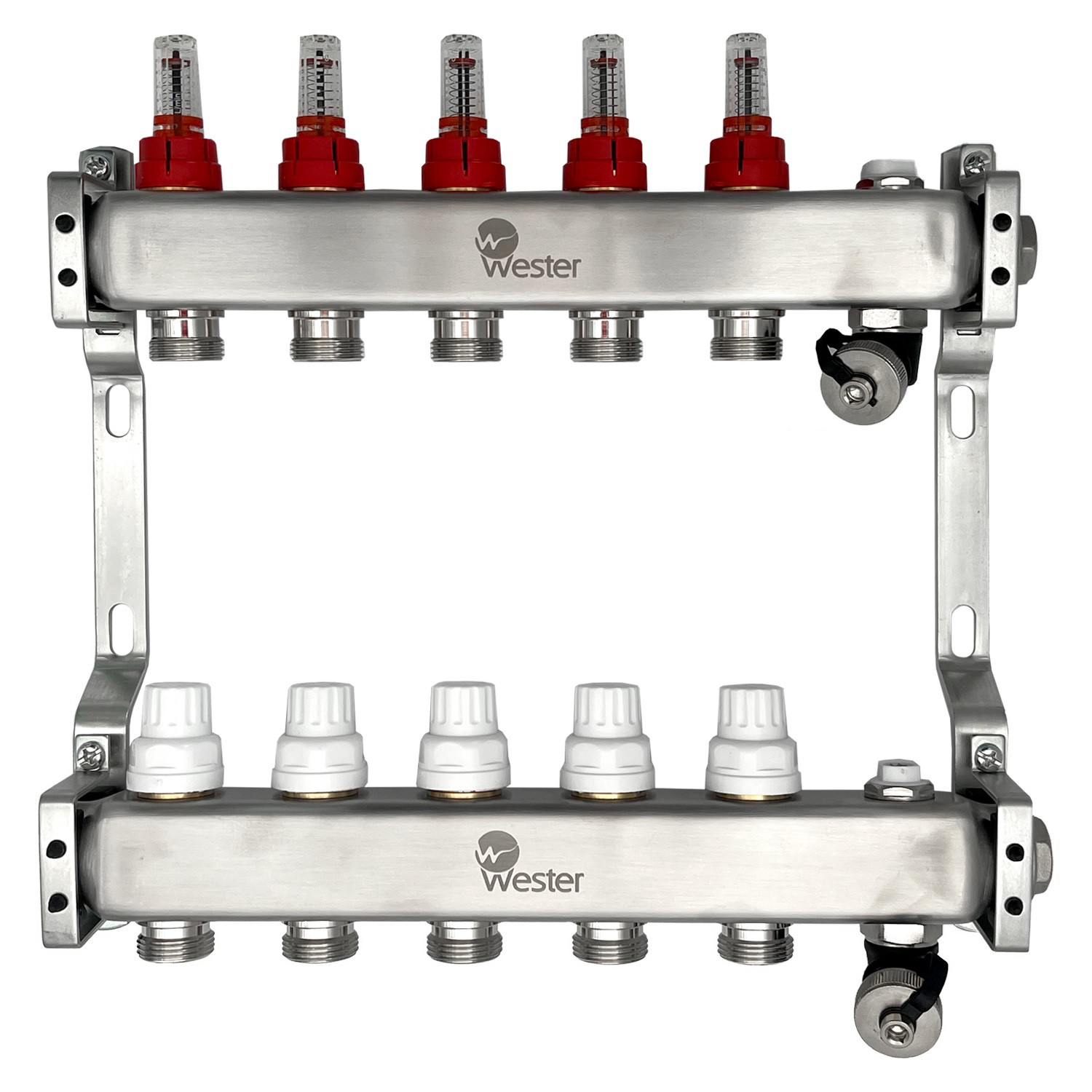 Коллекторный блок распределительный Wester с расходомерами и регулировочными клапанами серии 5 предназначен для оптимизации и контроля распределения теплоносителя в системах радиаторного отопления и подогрева полов.