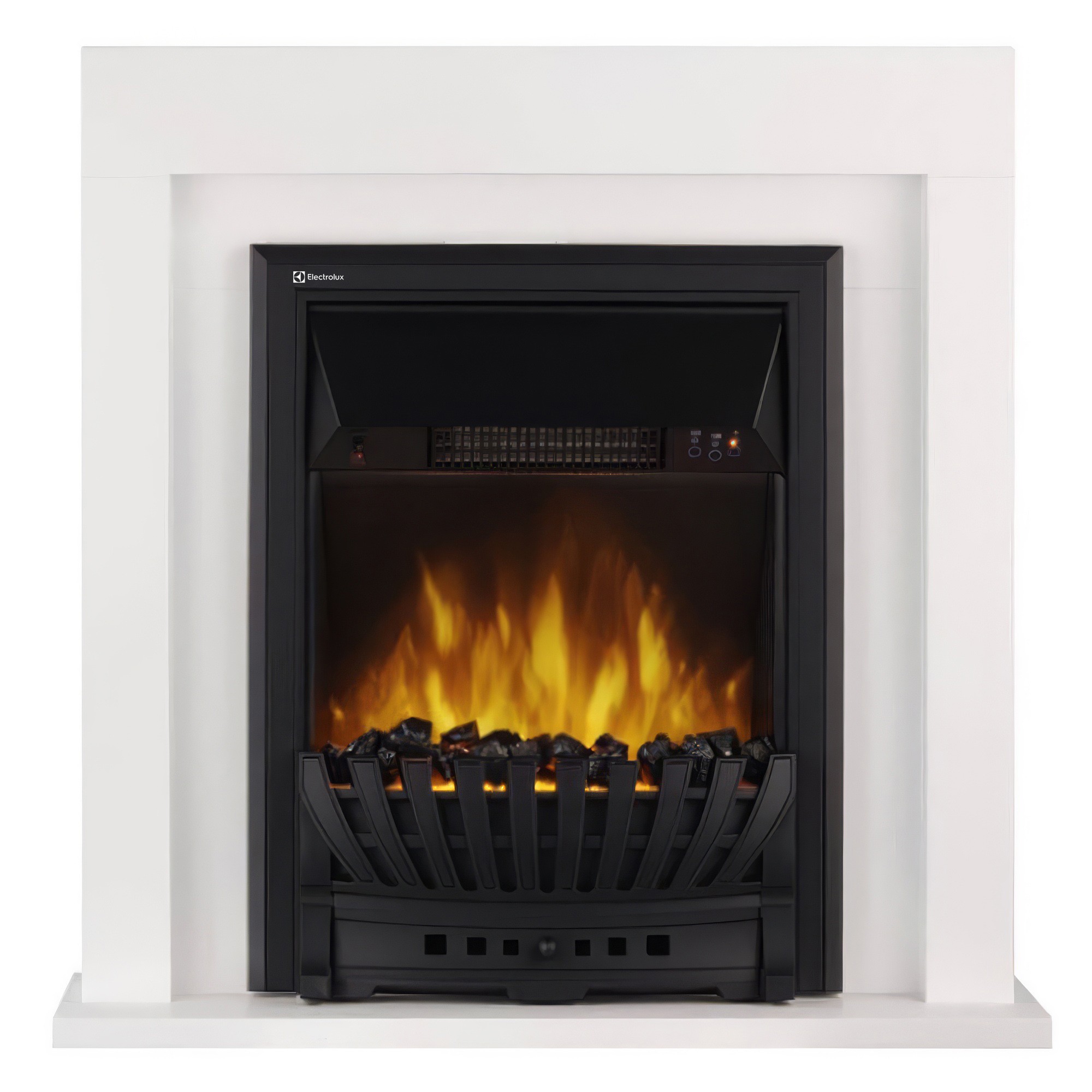 Прямые линии портала и безупречный белый цвет подчёркивают яркость и красоту пламени очага.