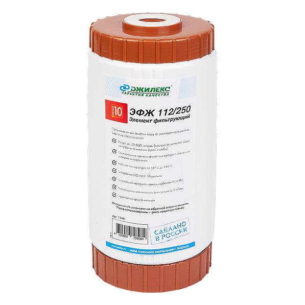 Элемент фильтрующий предназначен для очистки воды от растворенного железа, марганца, сероводорода. Очищающий материал - смесь сорбентов АС и МС.