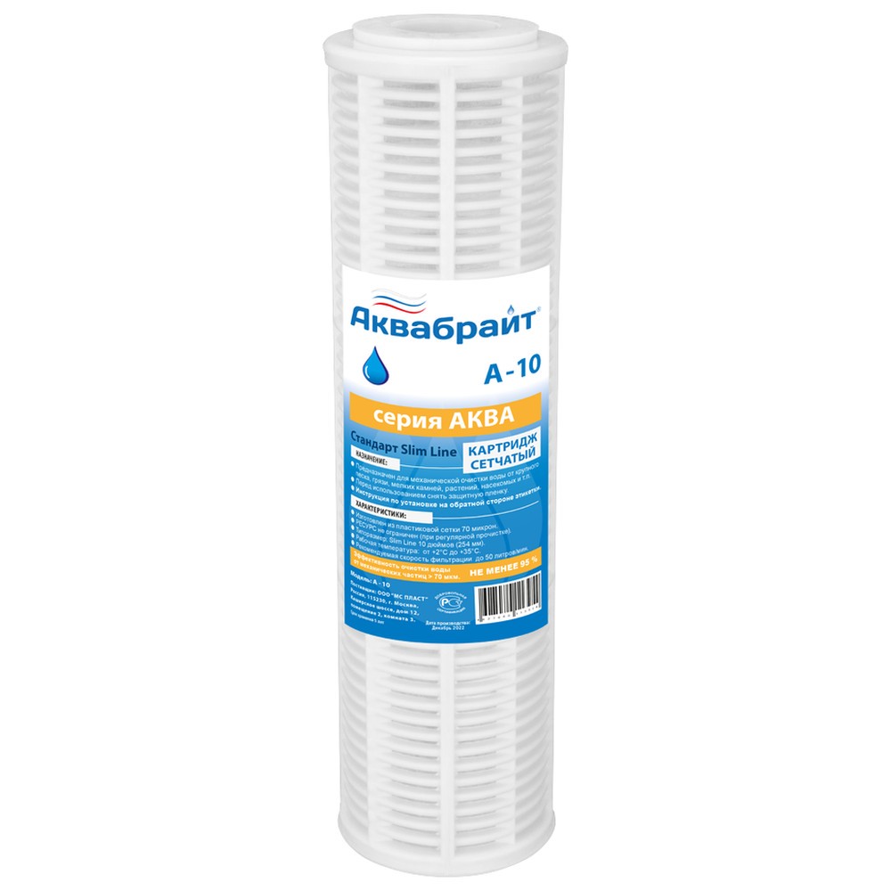 Картридж АКВАБРАЙТ А-10 состоит из каркаса и полимерной сетки с размером ячейки 70 мкм.