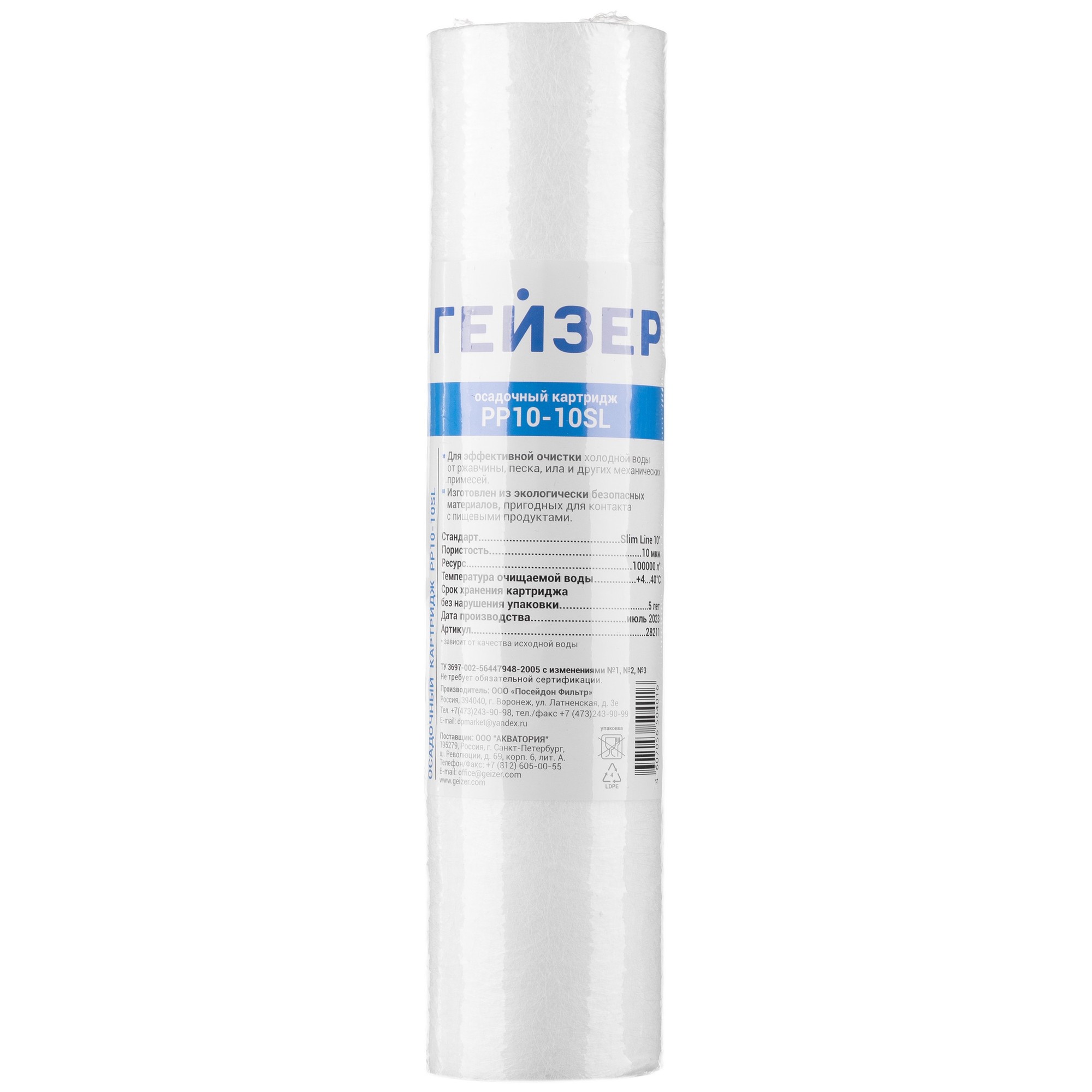 PP 10 - 10SL - картридж из вспененного полипропилена, предназначен для механической очистки воды от ржавчины, грязи, песка и других нерастворимых примесей размерами более 10 мкм. Восстановлению не подлежит, после окончания ресурса заменяется на новый.