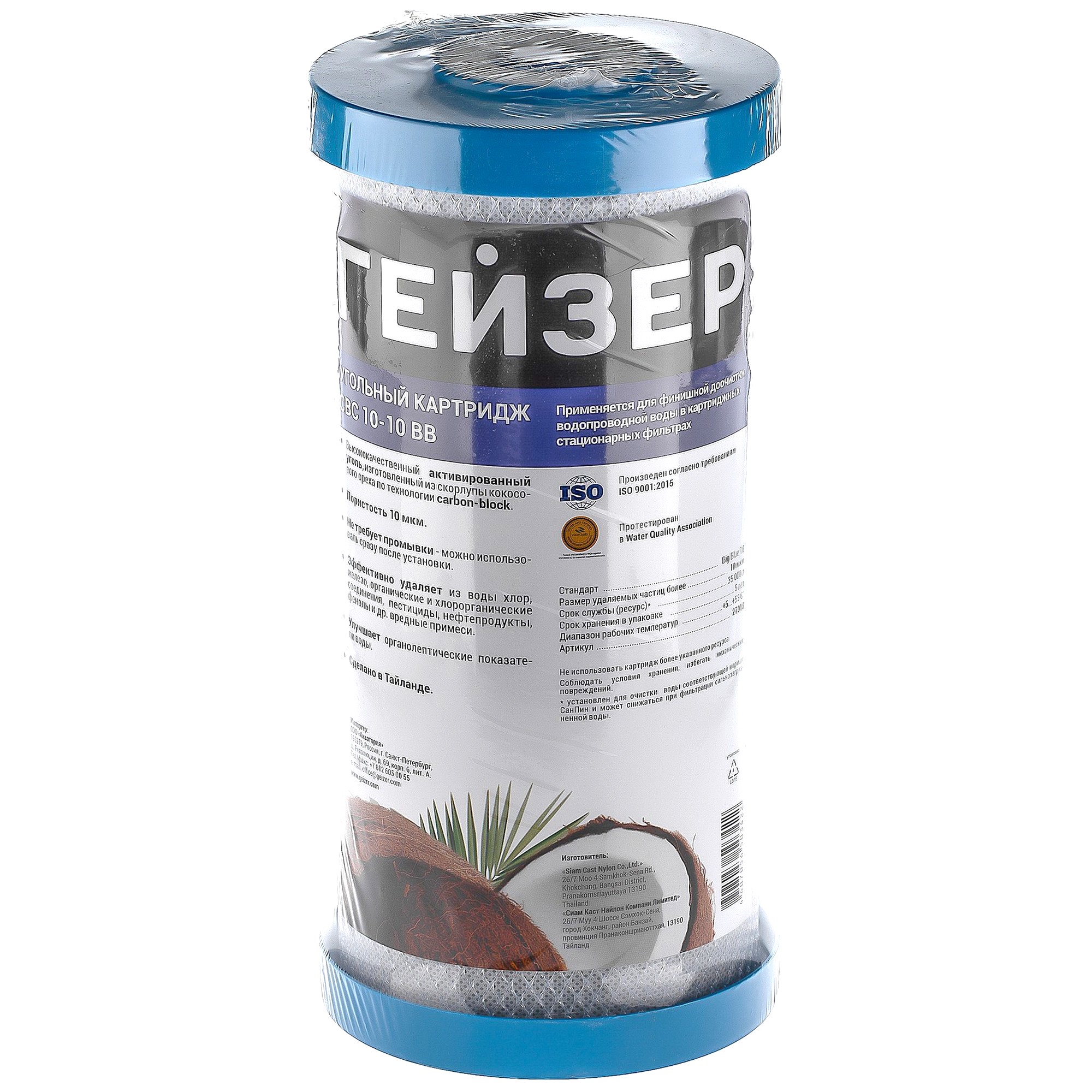Картридж CBC 10 – 10ВВ изготовлен из высококачественного кокосового активированного угля по технологии карбон-блок, что обеспечивает глубокую очистку воды от хлора, органических и хлорорганических соединений. Устраняет неприятные запахи и улучшает вкус воды.