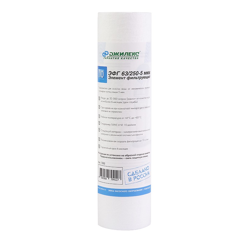 Элемент фильтрующий ЭФГ 63/250 - 5 мкм предназначен для очистки воды от механических примесей с размером частиц свыше 5 мкм. Очищающий материал - полипропиленовый волокнистый материал с различной плотностью намотки. Это простой и эффективный способ защиты сантехники и бытовой техники.