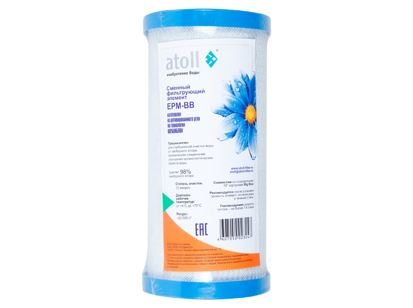 - Устанавливается в магистральные фильтры размера Big Blue 10".
