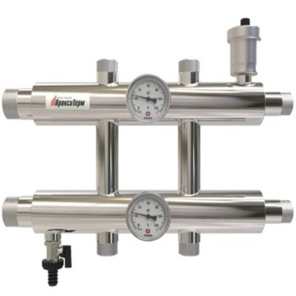 Распределительный коллектор на 3 контура для устройства систем отопления с тремя потребителями тепла с различными параметрами расхода и температуры теплоносителя. Предназначены для эффективного и пропорционального распределения теплового потока, который выделяется теплоносителями.
