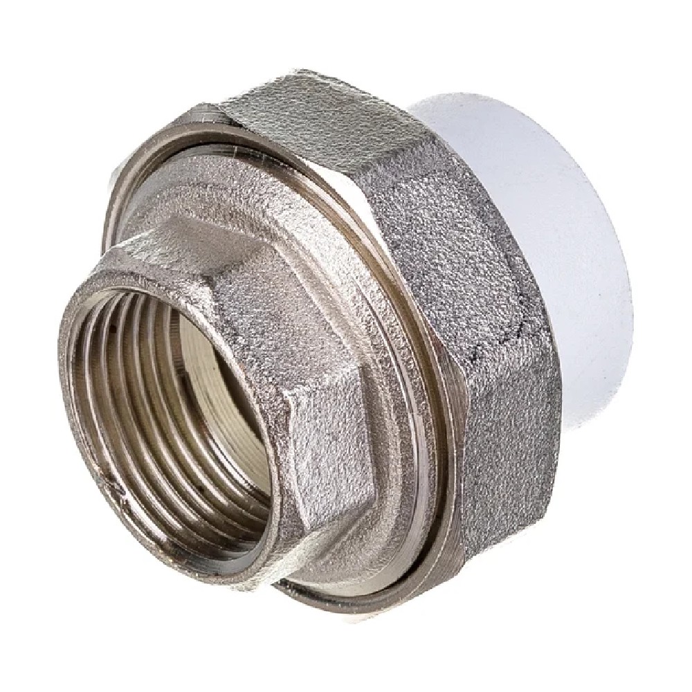 Комбинированные разъемные полипропиленовые фитинги имеют накидную гайку и резьбовую втулку из латуни марки CW617N с никелированным покрытием и служат для получения разъемного соединения. На резьбовой части фитинга имеется шестигранник, за который муфта удерживается при затяжке. Герметичность разъемного соединения достигается благодаря уплотнительному кольцу с круглым сечением из EPDM.