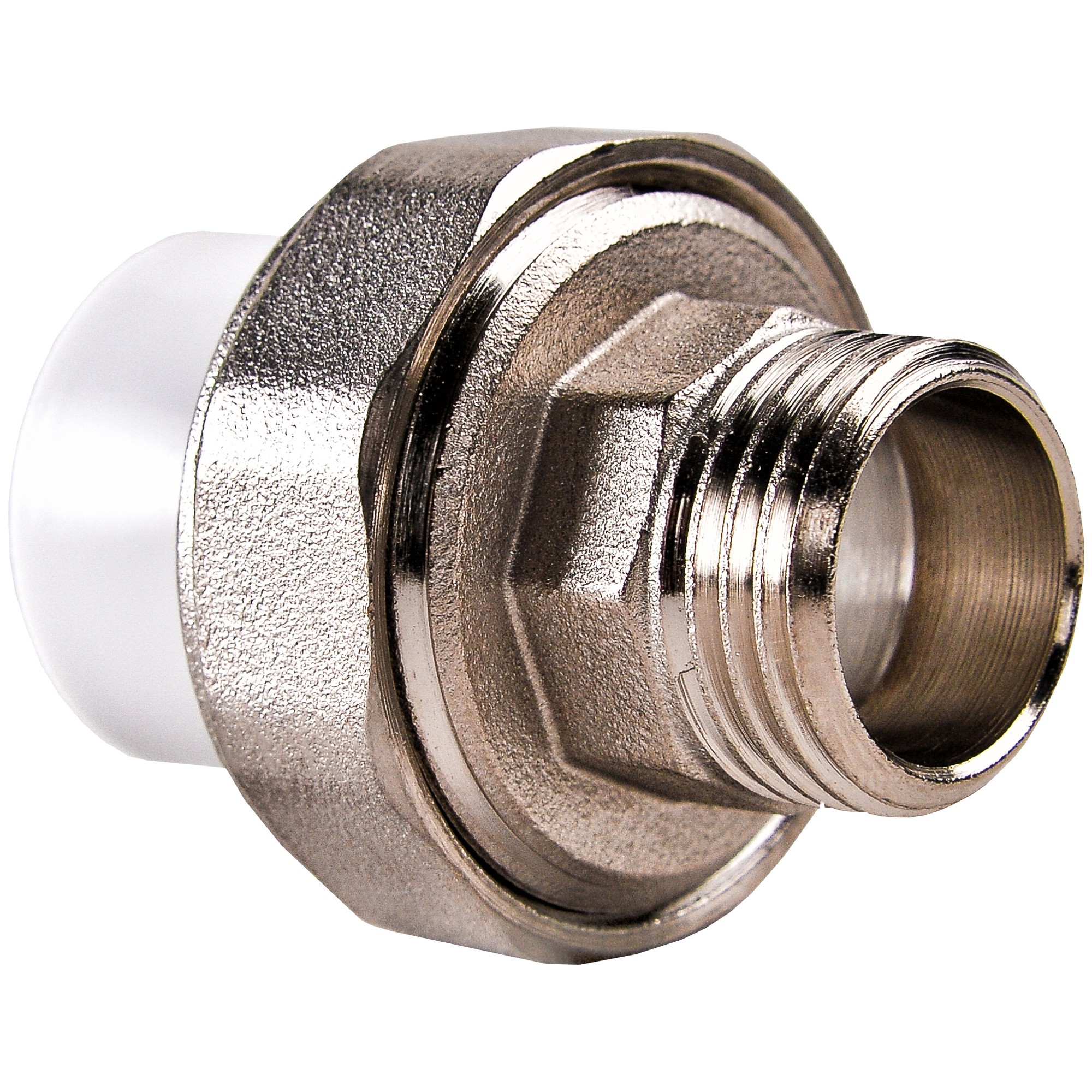 Муфта комбинированная полипропиленовая разъемная – это фитинг, предназначенный для быстроразъемного (отсоединяемого) соединения полипропиленовой трубы с металлической арматурой или оборудованием, имеющим внутреннюю резьбу.Она состоит из полипропиленового раструба для термической сварки с трубой и латунной вставки с наружной резьбой, соединенных накидной гайкой для герметичного и многоразового разъединения узла. Используется в системах горячего и холодного водоснабжения (ГВС/ХВС) и отопления.
