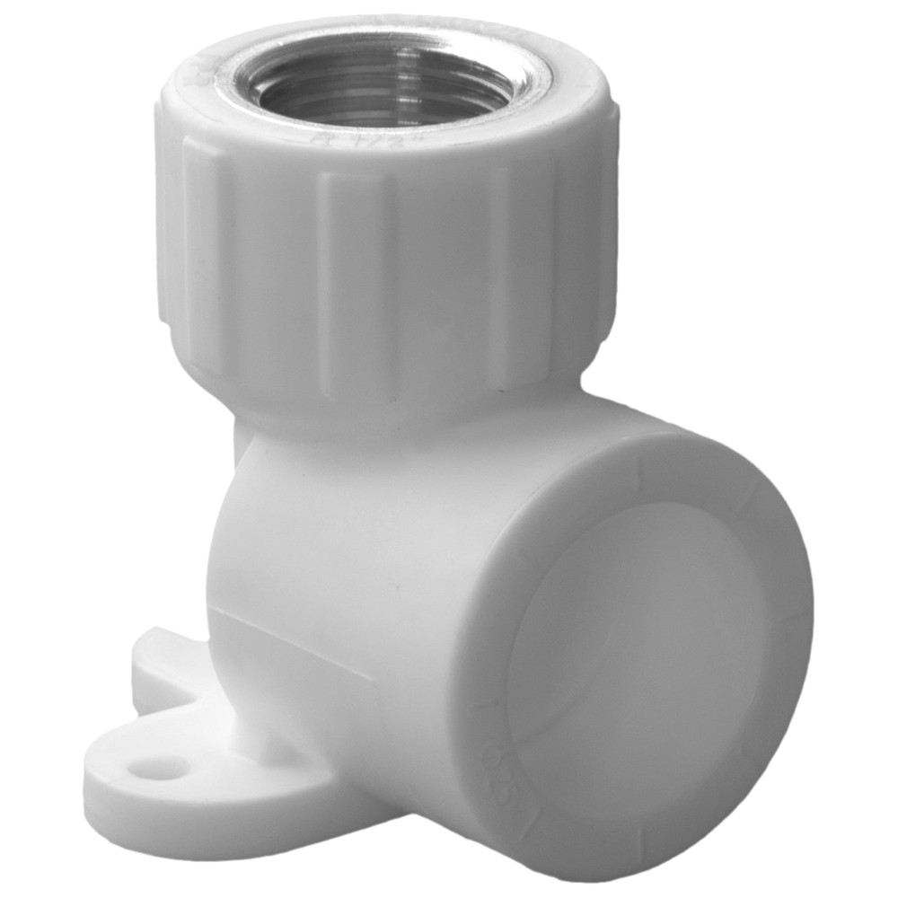 Угольник с внутренней резьбой и с креплением к стене используется для соединения под углом 90 градусов и одновременного крепления к вертикальной плоскости полипропиленовых труб с резьбовым фитингом с наружной резьбой. Такой угольник применяется в системах хозяйственно-питьевого водоснабжения и низкотемпературного отопления, высокотемпературного отопления отопительными приборами, а также для перекачки других жидких и газообразных сред, к которым материал угольника химически стоек.