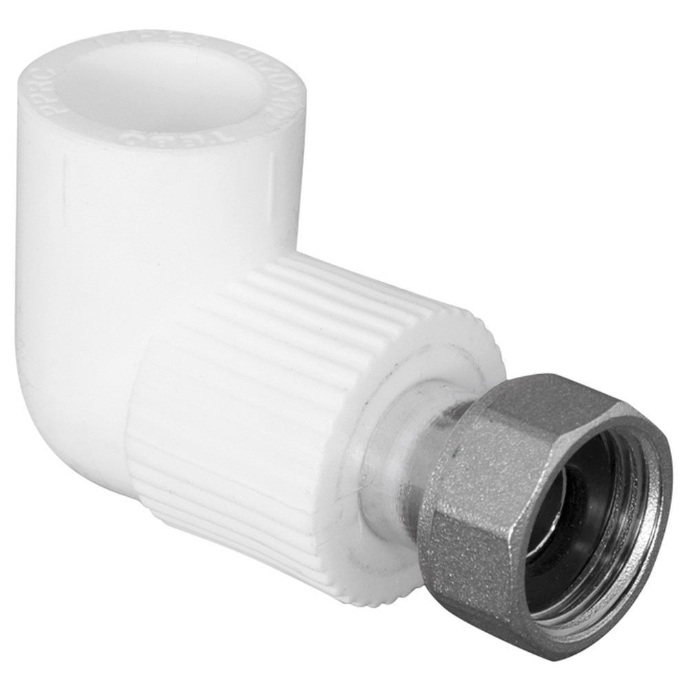 Угольник TEBO бел. PP-R 90 град. с накидной гайкой 25х3/4" (20/100), арт. 030031005